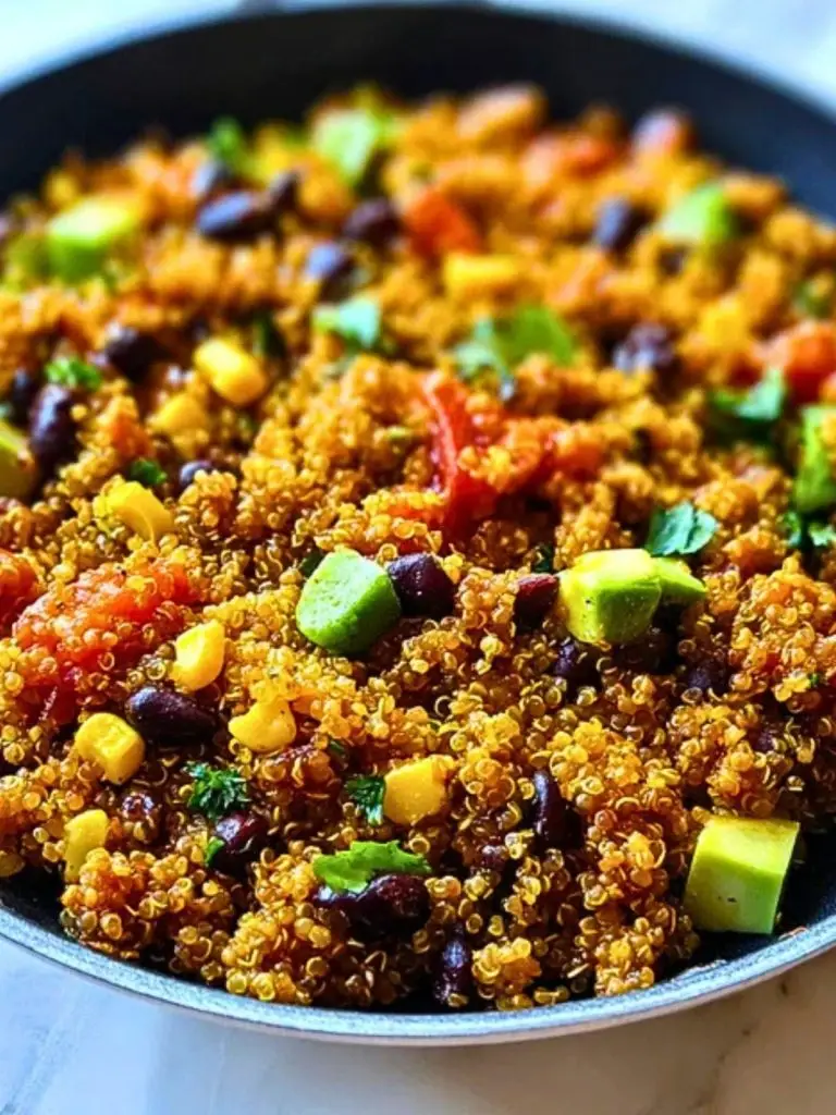 This One Pan Mexican Quinoa is a flavor-packed, veggie-loaded meal that comes together in under 30 minutes. It’s hearty, colorful, and loaded with wholesome ingredients like black beans, corn, diced tomatoes, and avocado—all simmered together with perfectly seasoned quinoa. A touch of lime and cilantro brings it to life, while the one-pan method keeps cleanup minimal.