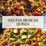 Looking for a healthy, flavorful one-pan dish you can whip up in under 30 minutes? This One Pan Mexican Quinoa is your answer. It’s a quick dinner recipe packed with plant-based protein, fiber, and bold spices. Perfect for meal prep, easy dinner nights, or when you need satisfying food ideas fast. Loaded with black beans, corn, tomatoes, and avocado, this easy recipe is everything you love about Mexican flavors in one skillet.