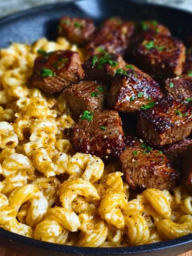 A quick and flavorful skillet dinner with juicy steak bites and creamy, cheesy garlic butter noodles. Perfect for weeknights when you want comfort food with minimal cleanup.