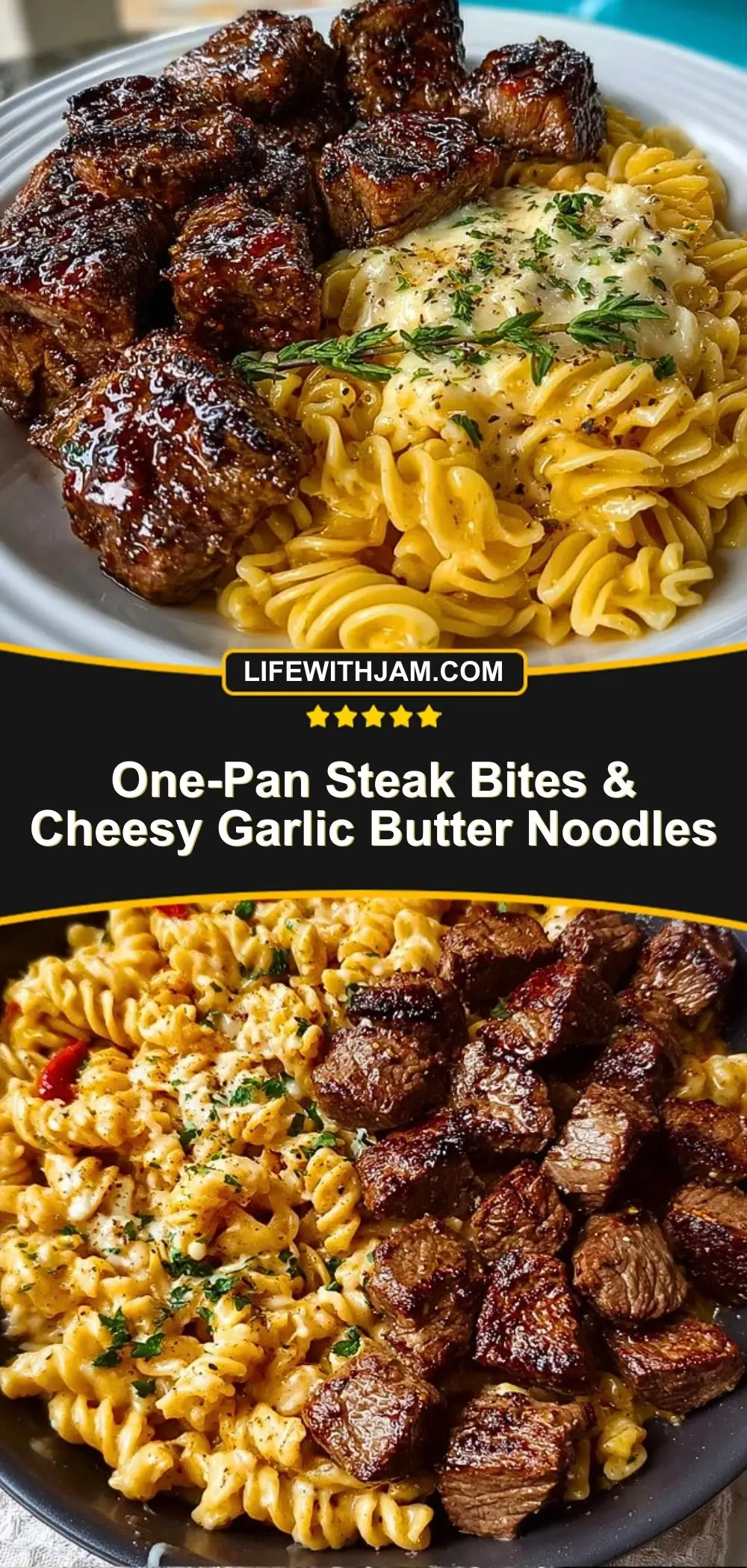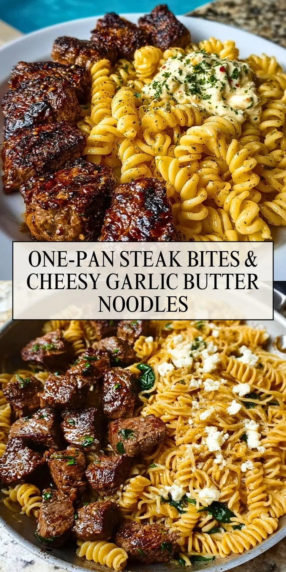 One-Pan Steak Bites & Cheesy Garlic Butter Noodles