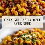 Goulash is best served piping hot, right from the pot. Scoop generous portions into bowls and pair it with crusty garlic bread or a crisp green salad to round out the meal. For an extra indulgent touch, top it with shredded cheddar, sour cream, or a sprinkle of chili flakes.