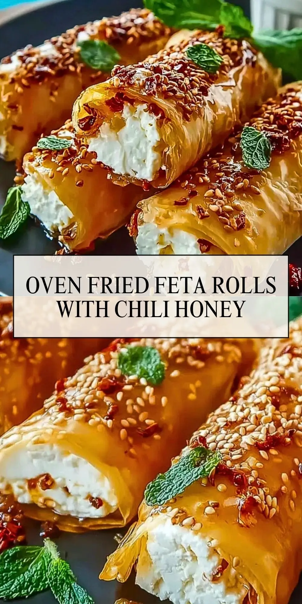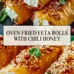 These oven fried feta rolls are a crispy, golden delight filled with warm, creamy feta and finished with a sweet-spicy chili honey drizzle. Perfect as an appetizer or a savory snack, they offer gourmet flavor without the need to deep fry. Simple ingredients and a stunning payoff!