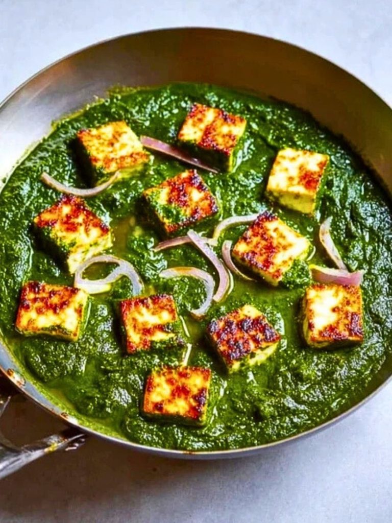 This creamy, vibrant Palak Paneer blends spiced spinach gravy with golden-fried paneer cubes for a wholesome vegetarian dish. Perfect with naan or rice, it’s a cozy, flavorful meal you can easily make at home.