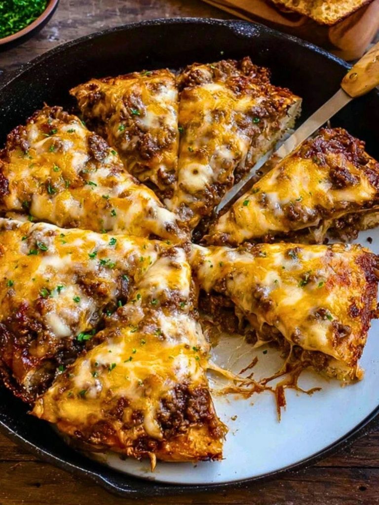 Patty Melt Pizza is the ultimate skillet dinner: crispy hash brown crust topped with savory beef, caramelized onions, and melty cheese. It’s a comforting, crave-worthy twist on a classic diner favorite that bakes up bubbly and golden. Perfect for family dinners, parties, or indulgent weekend brunch.