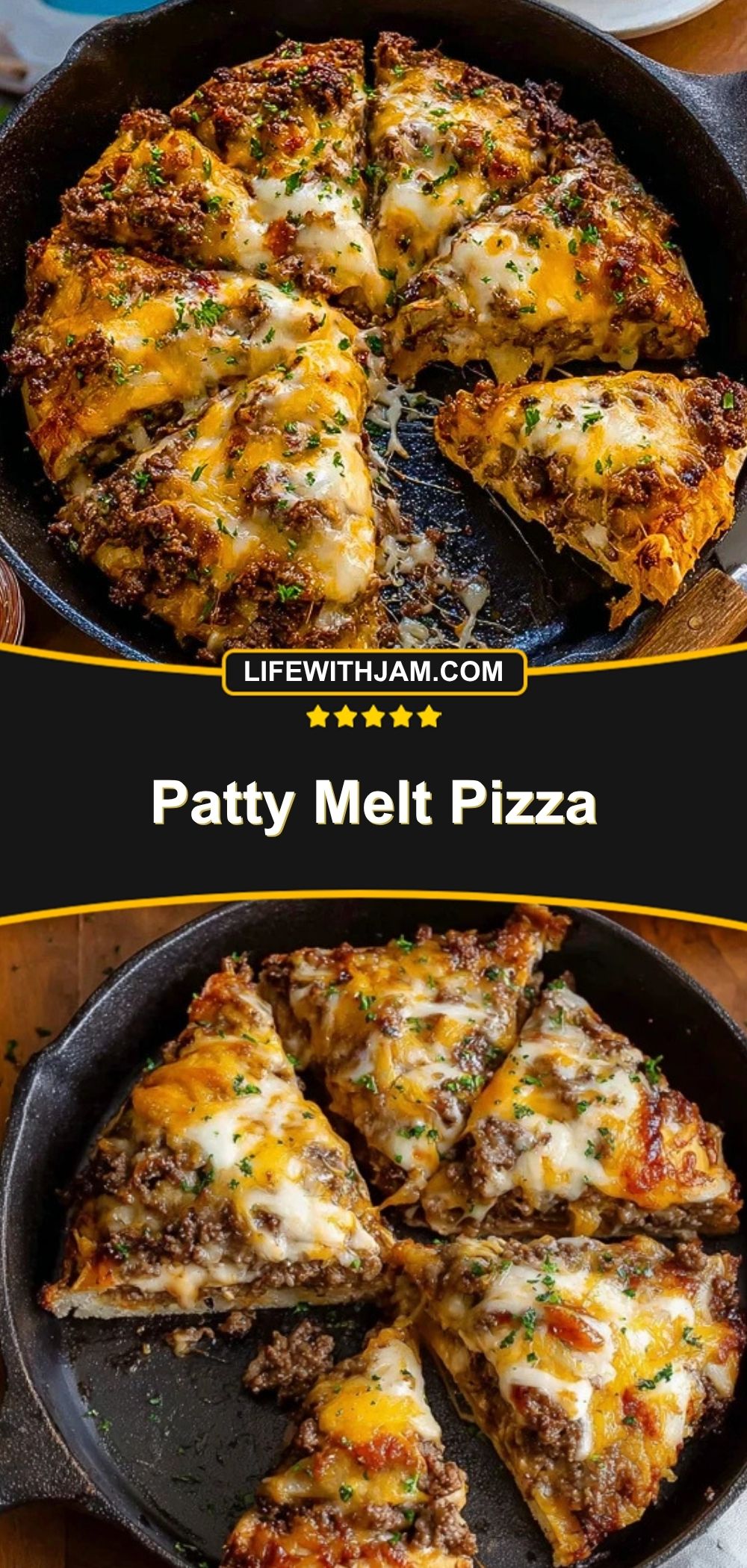Patty Melt Pizza is best served hot and straight from the skillet, where the cheese is still gooey and the hash brown crust crackles with every bite. This makes it perfect for dinner parties, game night, or even an indulgent brunch option. Pair it with a crisp side salad or some crunchy pickles to balance out the richness.