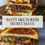 Golden, buttery grilled bread, layers of melty cheese, caramelized onions, and juicy seasoned ground beef all held together with a luscious secret sauce—these Patty Melts are everything you crave in a comforting sandwich. Perfectly messy in the best way, every bite hits that savory-sweet balance that makes you want to lick your fingers and go back for more.