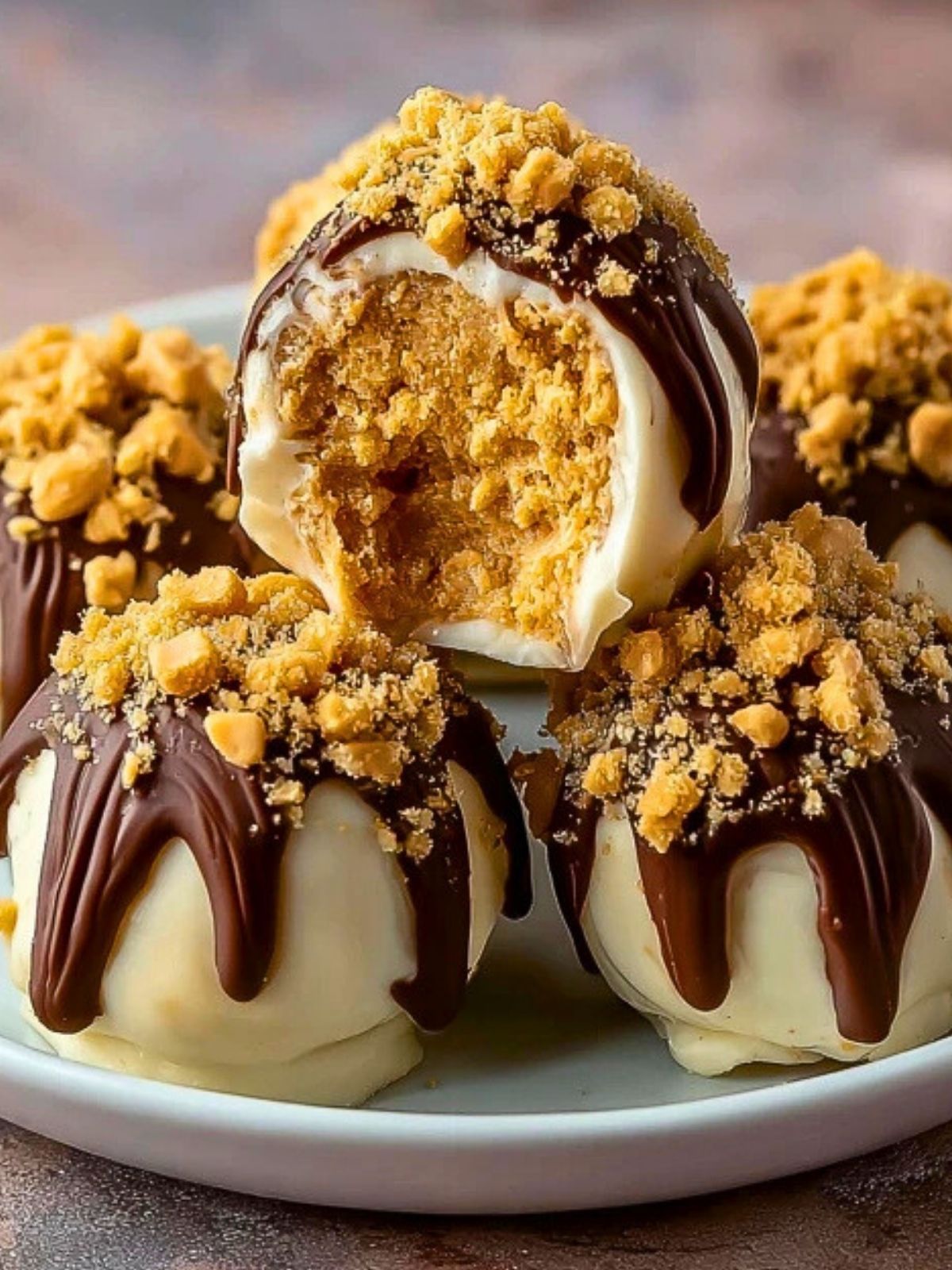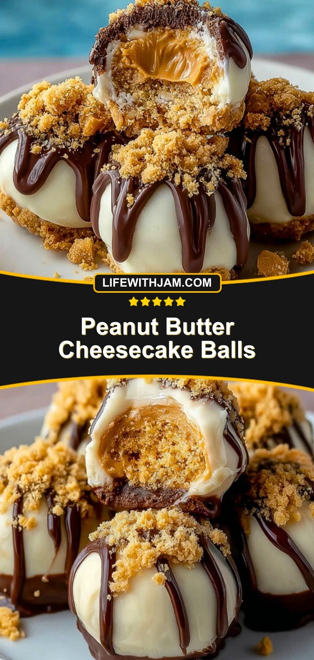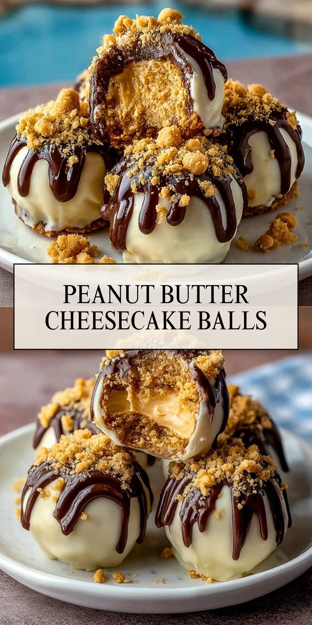 Creamy, dreamy, and decadently rich—these Peanut Butter Cheesecake Balls are the kind of treat that disappears within minutes of serving. Imagine a soft, cheesecake-like peanut butter center wrapped in a crisp white chocolate shell, finished with a drizzle of dark chocolate and a sprinkle of crushed peanuts. They look like truffles but pack all the nostalgic flavors of a peanut butter cheesecake in one perfect bite-sized dessert.