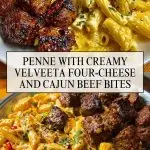 Penne with Creamy Velveeta Four-Cheese and Cajun Beef Bites