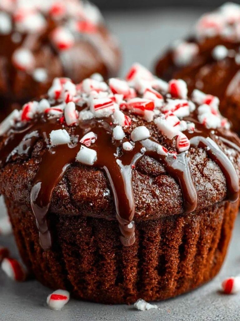 These Peppermint Hot Chocolate Muffins combine rich cocoa flavor with refreshing peppermint for the ultimate winter treat. Topped with a smooth chocolate glaze and crushed candy canes, they’re perfect for cozy mornings, holiday parties, or a sweet edible gift.