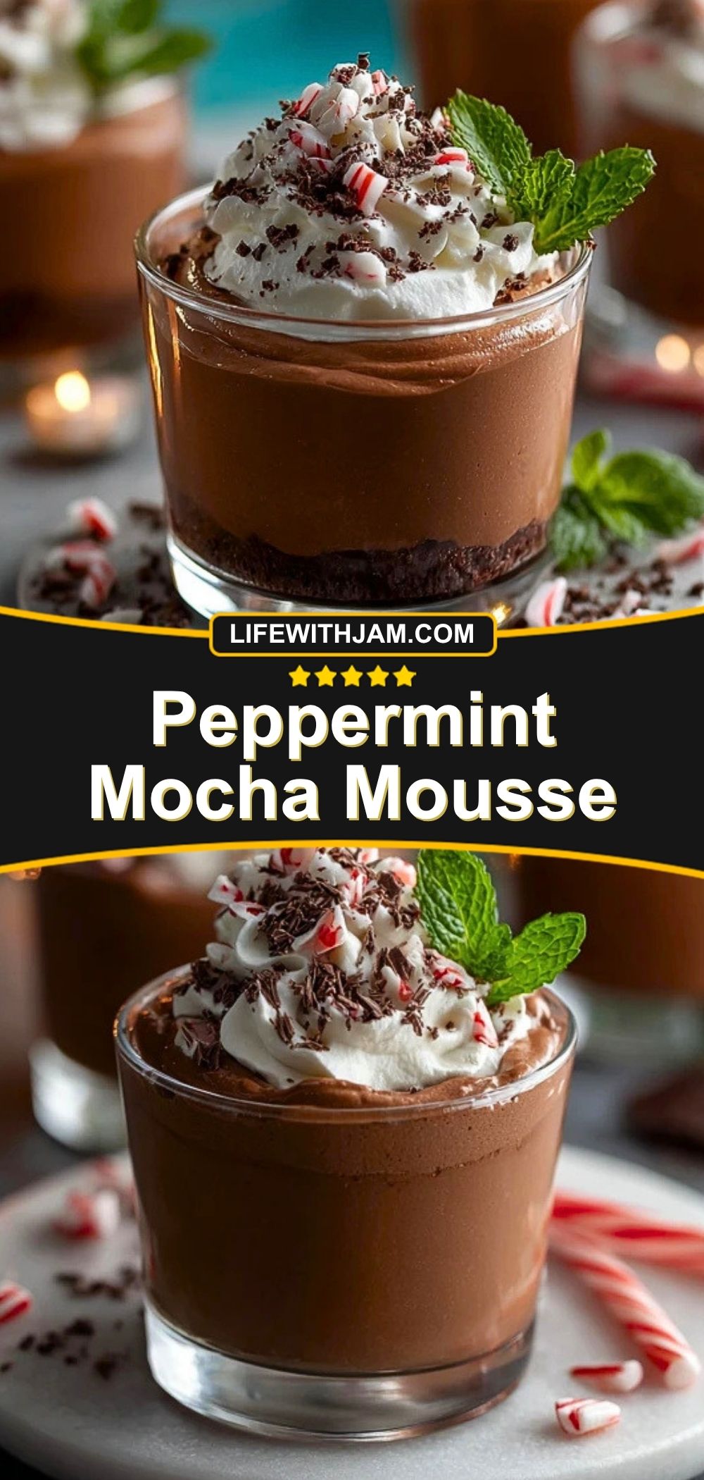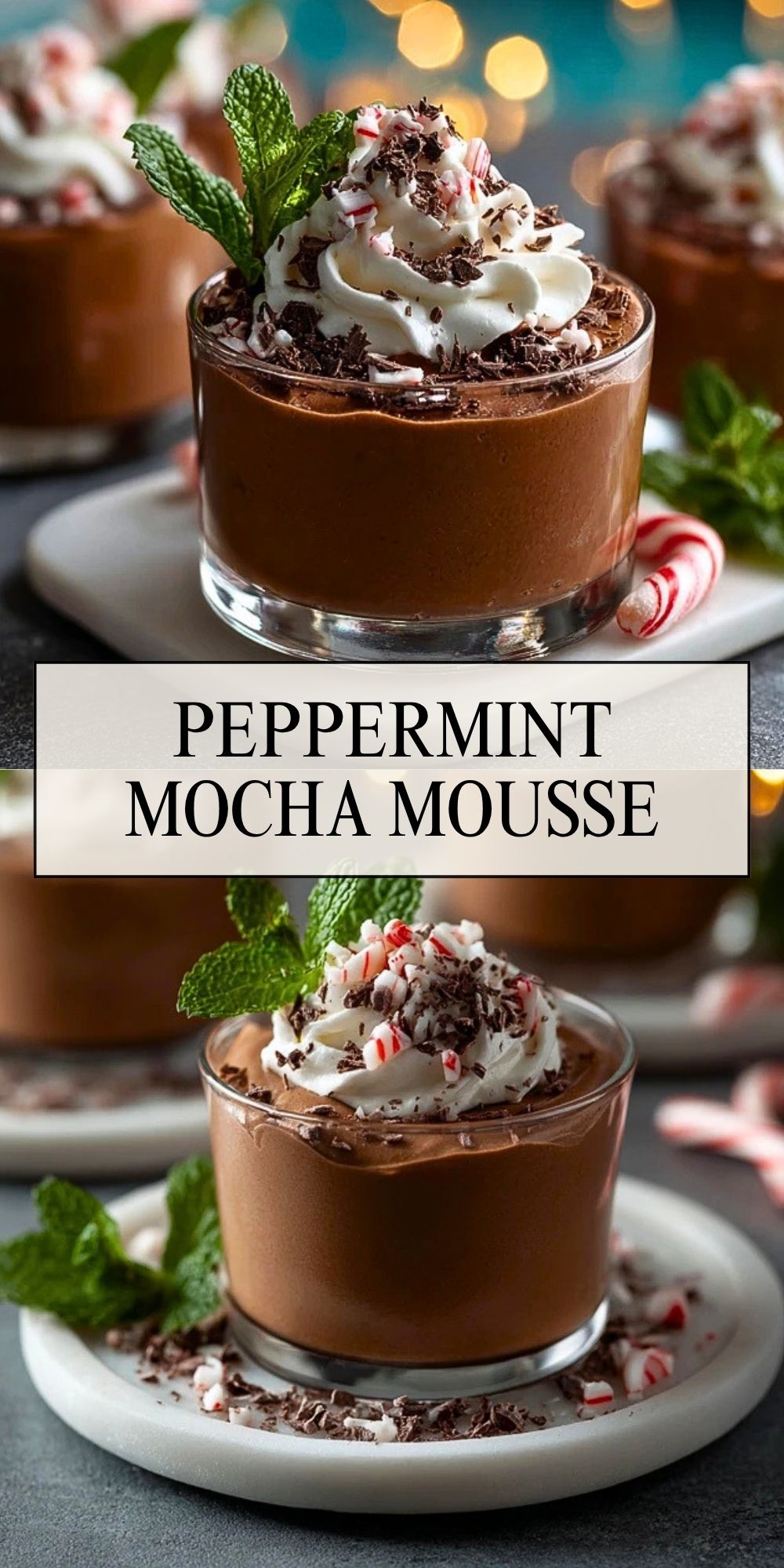 Peppermint Mocha Mousse is best served cold straight from the refrigerator. It works beautifully in clear dessert glasses for dinner parties, but it is just as lovely spooned into ramekins for a more casual presentation. For an extra-decadent finish, add whipped cream and toppings just before serving so everything stays fresh and crisp.