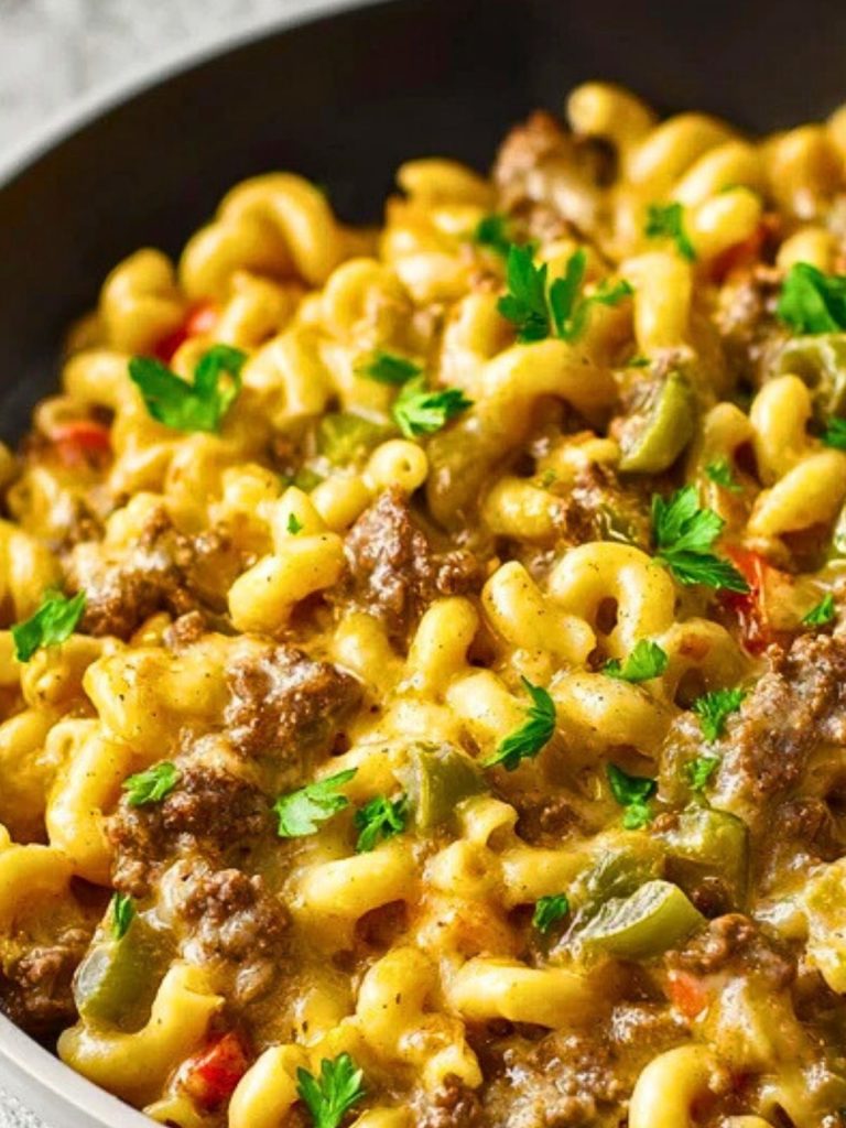 Short, sturdy pastas like cavatappi, rotini, or elbow macaroni are perfect for this recipe. They hold onto the sauce and tuck into the beef and peppers beautifully, making every bite flavorful. Avoid long noodles, which don’t cling to the meat and cheese as well.