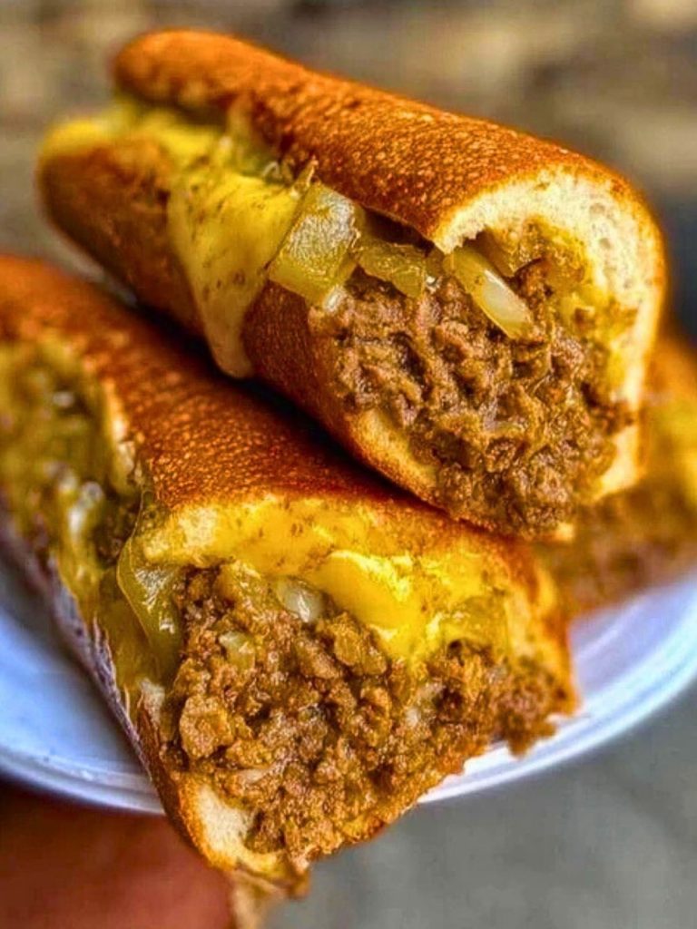 These sandwiches bring bold, savory flavor with a touch of melty nostalgia. The ground beef is seasoned and simmered with onions and peppers, then swirled with gooey cheese and spooned into warm, lightly crisped hoagie rolls. They’re fast, filling, and hit that sweet spot between classic and comfort.