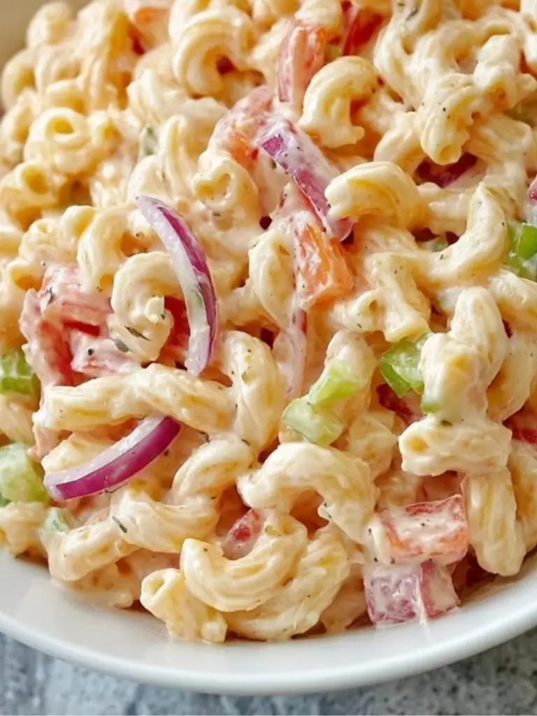 Keywords: creamy pasta salad, summer side dish, picnic food