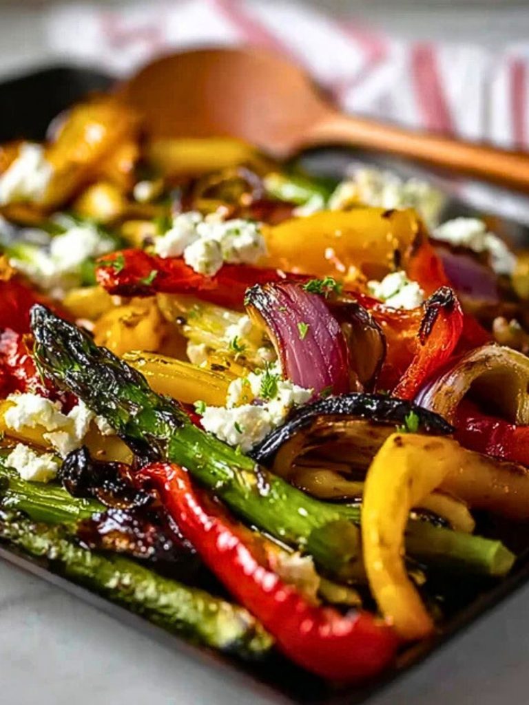 A colorful and flavorful medley of roasted bell peppers, onions, zucchini, and asparagus finished with creamy goat cheese and fresh herbs. This side dish is easy to prepare, packed with nutrients, and perfect for any meal—whether it’s a weeknight dinner or part of a holiday spread.