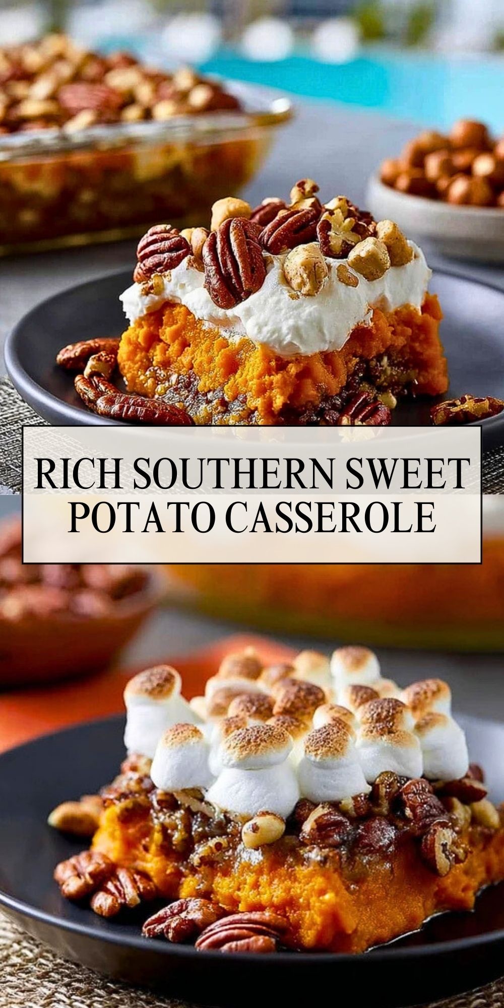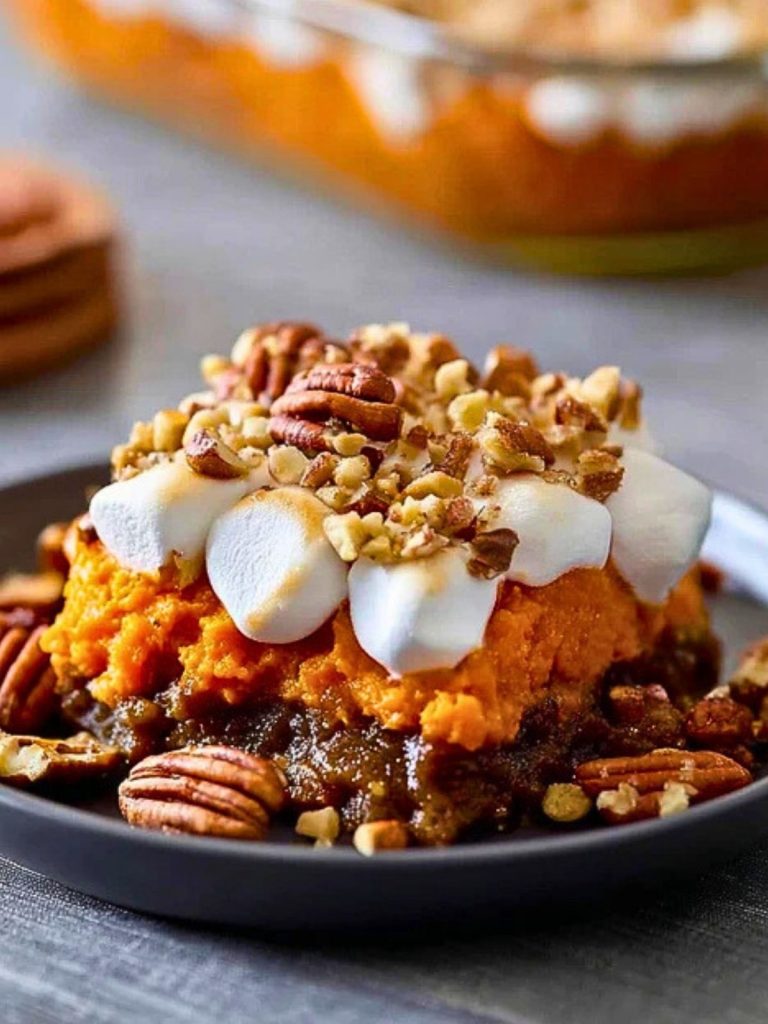 This Rich Southern Sweet Potato Casserole is everything you want in a holiday side dish—creamy mashed sweet potatoes, a brown sugar-nut crumble, and a golden crown of marshmallows. A Southern favorite that’s easy to prep ahead and a guaranteed crowd-pleaser.