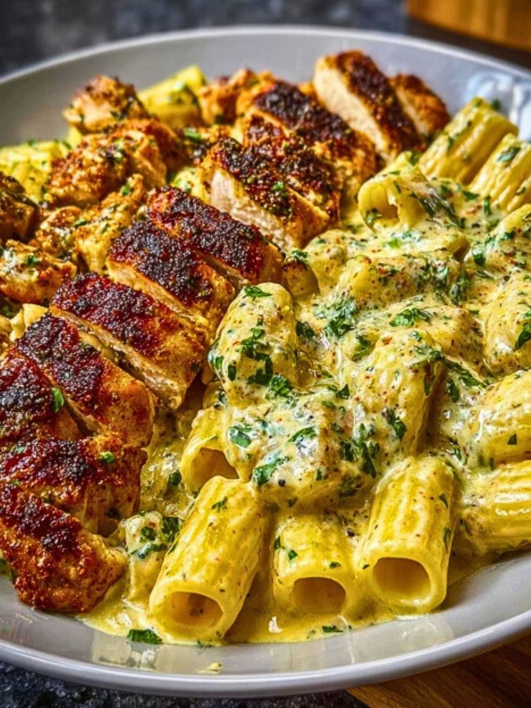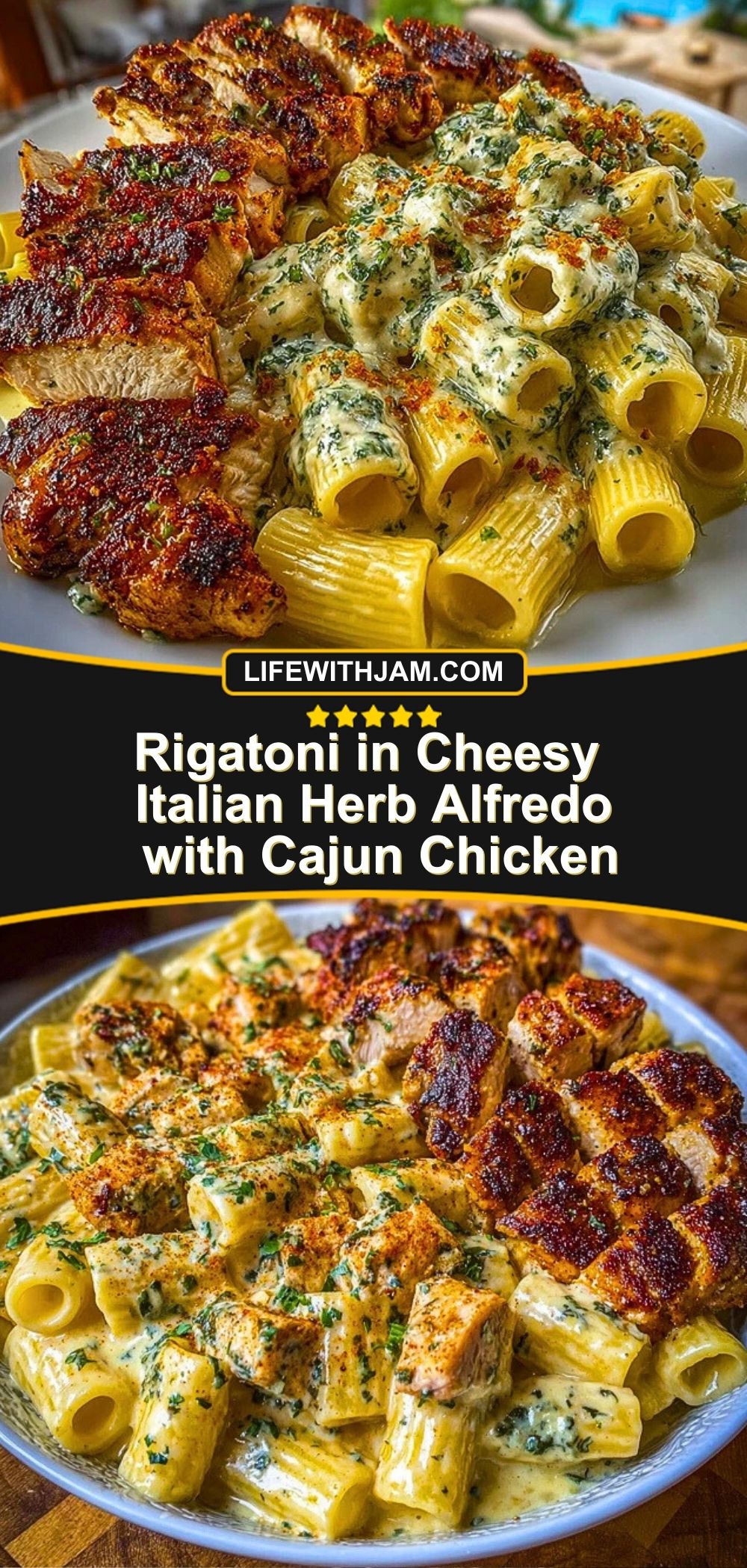 A creamy, cheesy Alfredo sauce loaded with Italian herbs, tossed with perfectly cooked rigatoni, and topped with bold, spicy Cajun chicken. It’s the ultimate weeknight comfort food that feels like a restaurant dish made right at home.