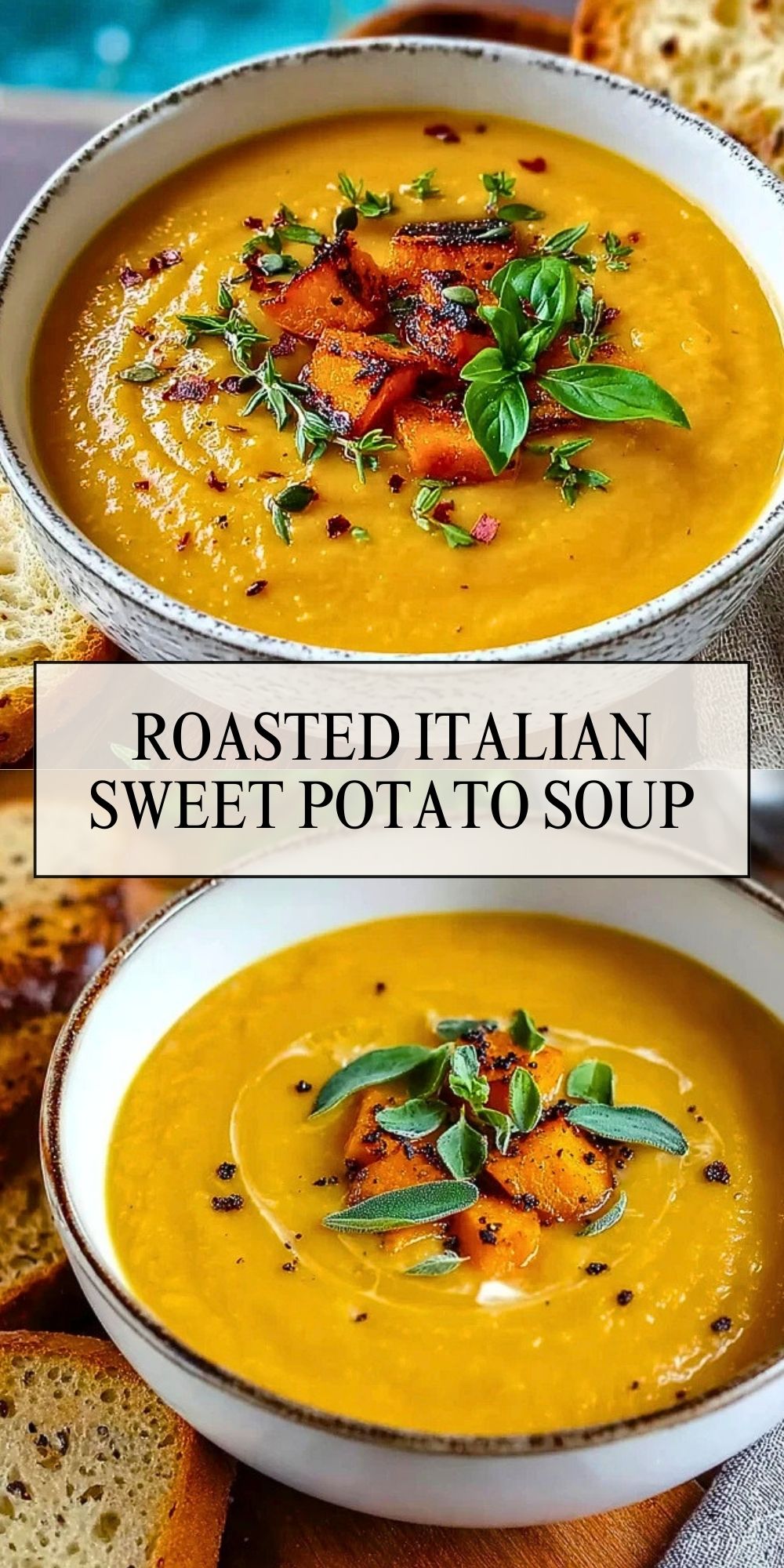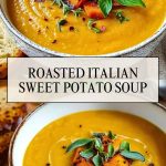 This Roasted Italian Sweet Potato Soup is the cozy hug your weeknight dinner needs. Velvety smooth with a delicate balance of sweet and savory, this soup turns humble ingredients into something elegant and satisfying. The sweetness of roasted sweet potatoes is deepened in the oven, then blended with garlic, onion, herbs, and a touch of Parmesan for a silky, rustic bowl that warms you from the inside out.