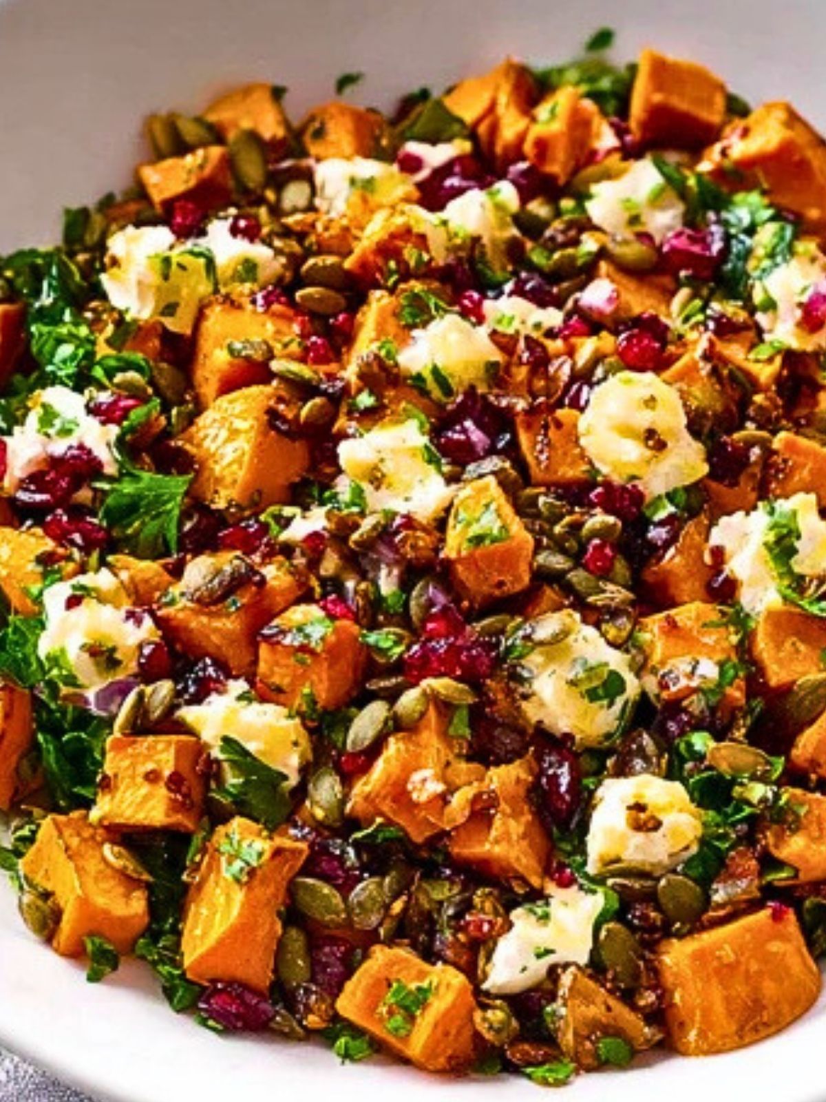 Looking for a vibrant and wholesome dish that ticks all the boxes? This Roasted Sweet Potato Salad is the perfect blend of sweet, savory, tangy, and crunchy—all in one bowl. Ideal for a quick lunch, healthy dinner, or even a show-stealing side at your next gathering. Featuring roasted sweet potatoes, kale, cranberries, goat cheese, and a maple mustard vinaigrette, this easy recipe brings big flavor and satisfying texture. Great for meal prep, holiday spreads, or when you just want a nourishing, colorful salad. A must-save for your go-to healthy food ideas and dinner ideas!