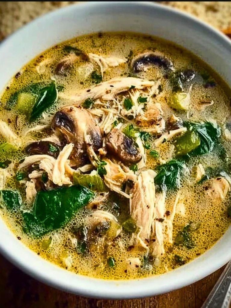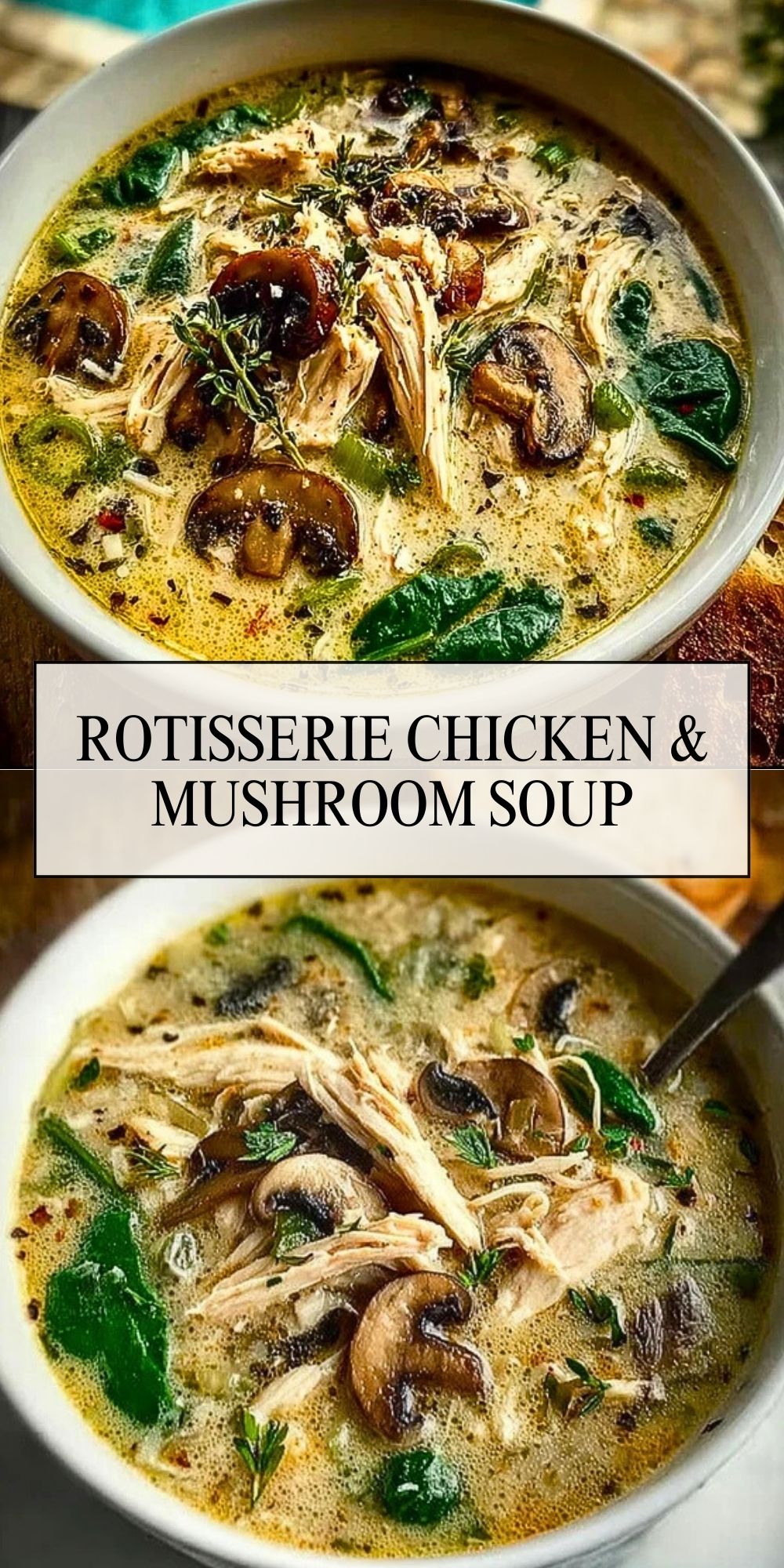 The beauty of this soup lies in its simplicity. Using store-bought rotisserie chicken slashes your prep time while still delivering deep, slow-cooked flavor. Add in sautéed mushrooms, garlic, onions, and fresh greens, and you’ve got a one-pot wonder that’s both hearty and nourishing.