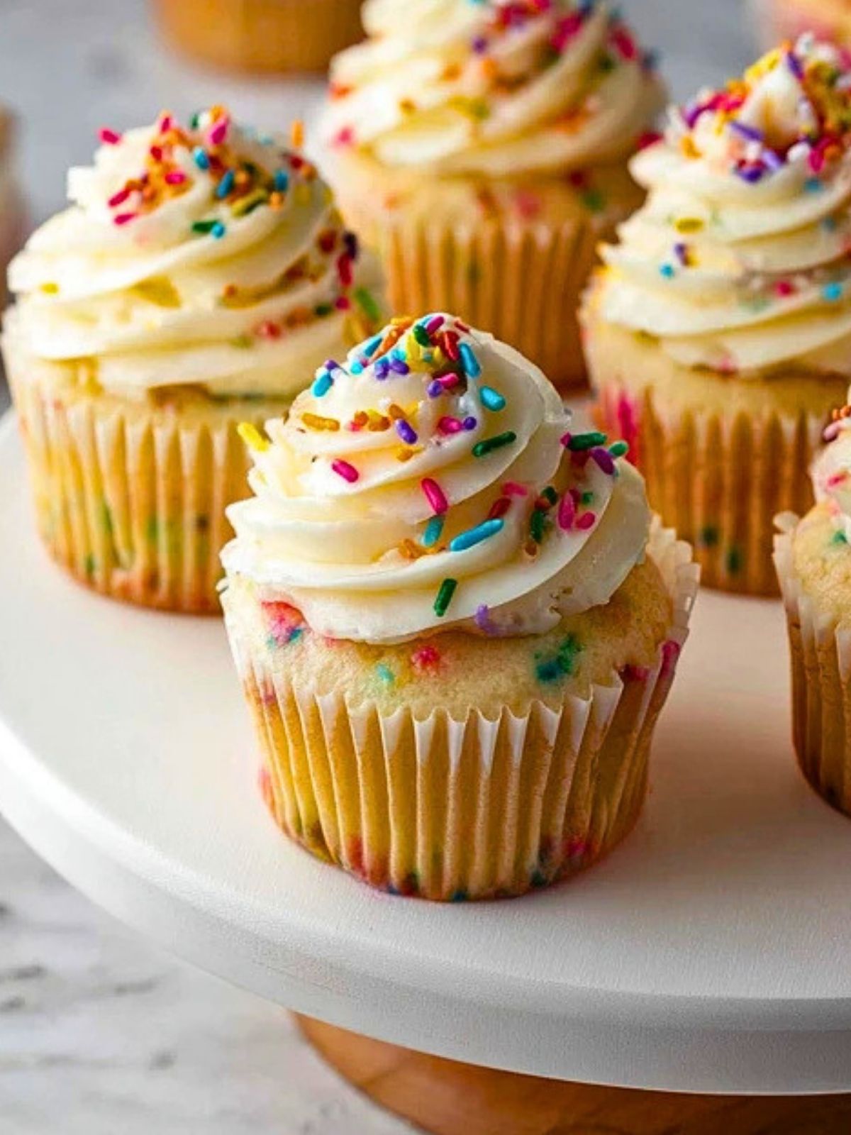 The magic of these cupcakes is in their balance. The vanilla base is rich enough to feel special, but still light enough to let the sprinkles shine. Using rainbow jimmies instead of nonpareils helps keep the colors bright without bleeding too much into the batter, so you get those pretty pops of color baked right into every cupcake.