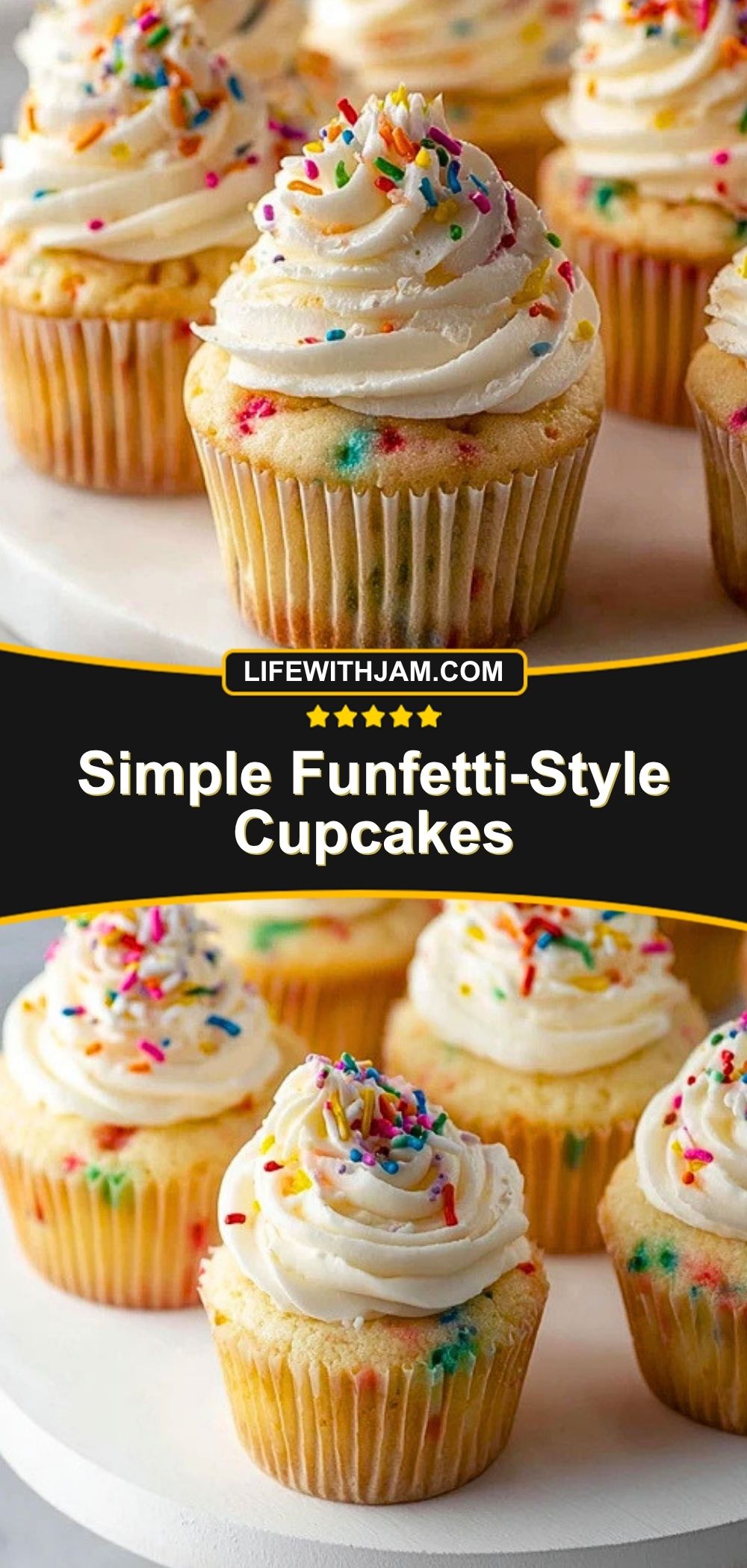These Simple Funfetti-Style Cupcakes are a quick dessert that turns everyday ingredients into a soft, fluffy, sprinkle-filled treat everyone loves. Perfect for birthday parties, easy dessert tables, fun baking days, and sweet food ideas, this easy recipe delivers classic vanilla flavor with creamy frosting and colorful fun in every bite.