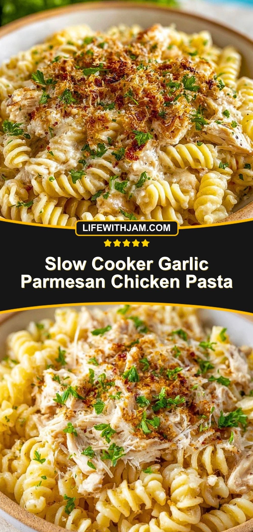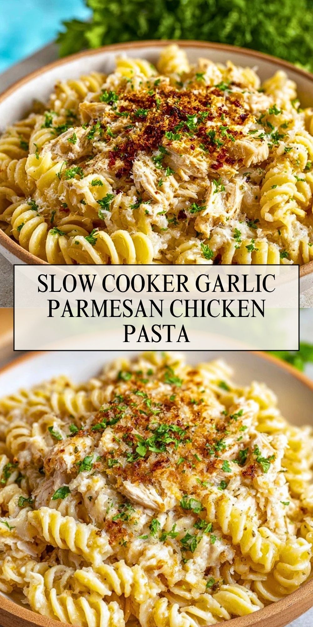 Slow Cooker Garlic Parmesan Chicken Pasta
