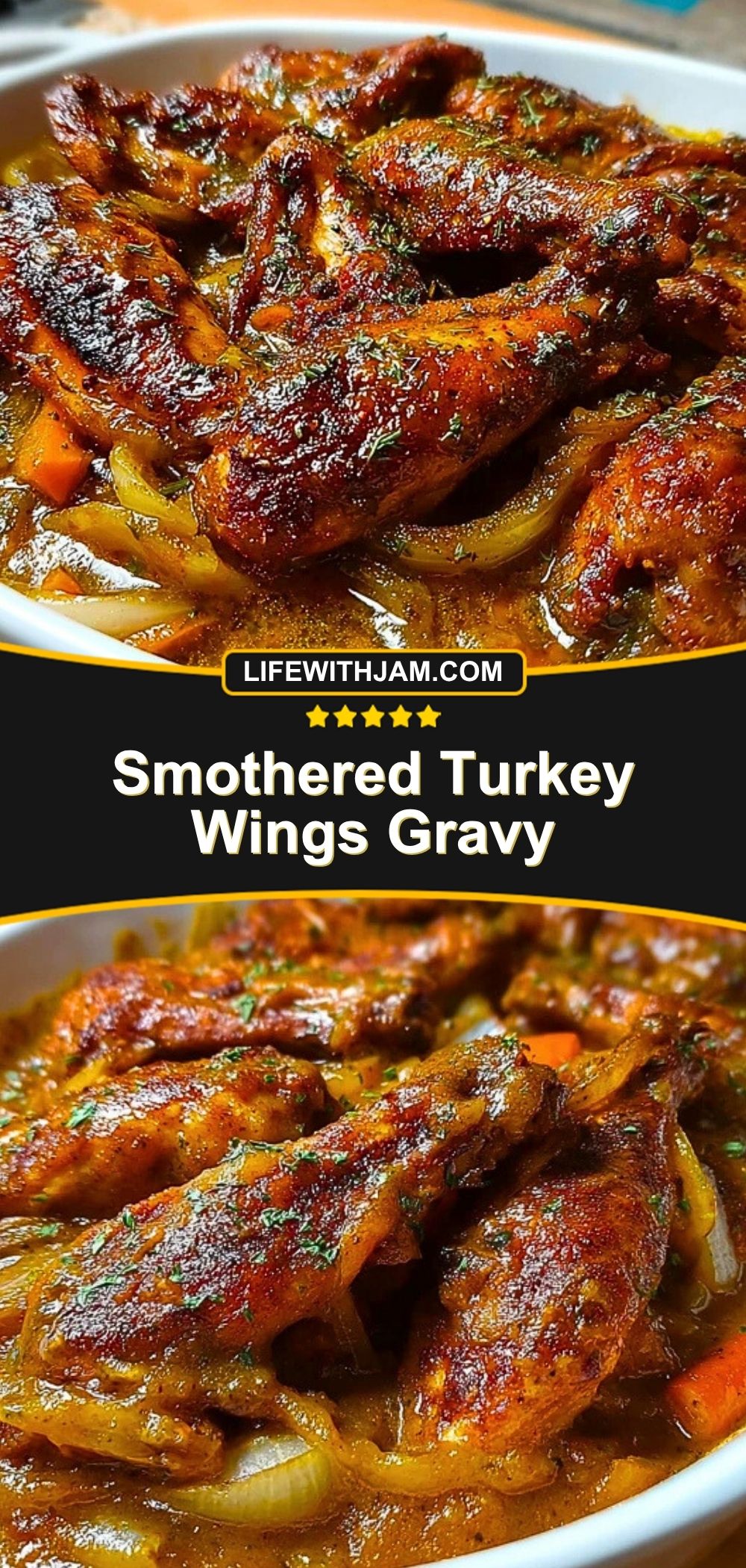 Smothered Turkey Wings Gravy is the ultimate comfort food—tender, oven-baked turkey wings blanketed in a rich, onion-forward gravy. It’s Southern soul food at its finest, perfect for cozy dinners or holiday feasts.