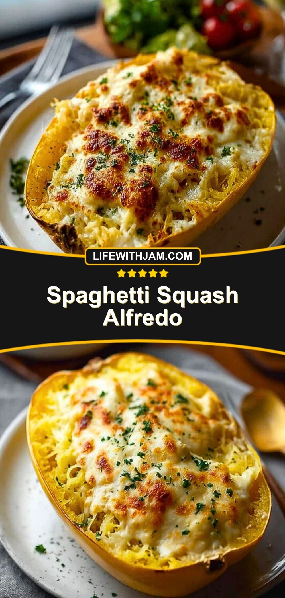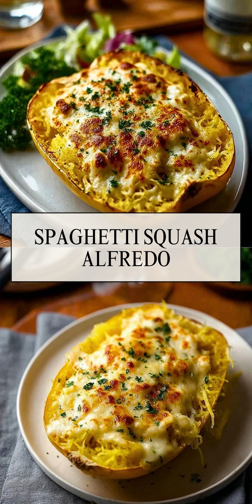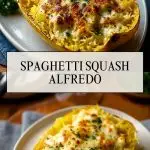 Serve the Spaghetti Squash Alfredo hot, straight from the squash shell for a rustic, no-dishes vibe. Pair it with a fresh green salad or roasted veggies for a complete meal. It also works well alongside grilled chicken or shrimp if you want to add extra protein.