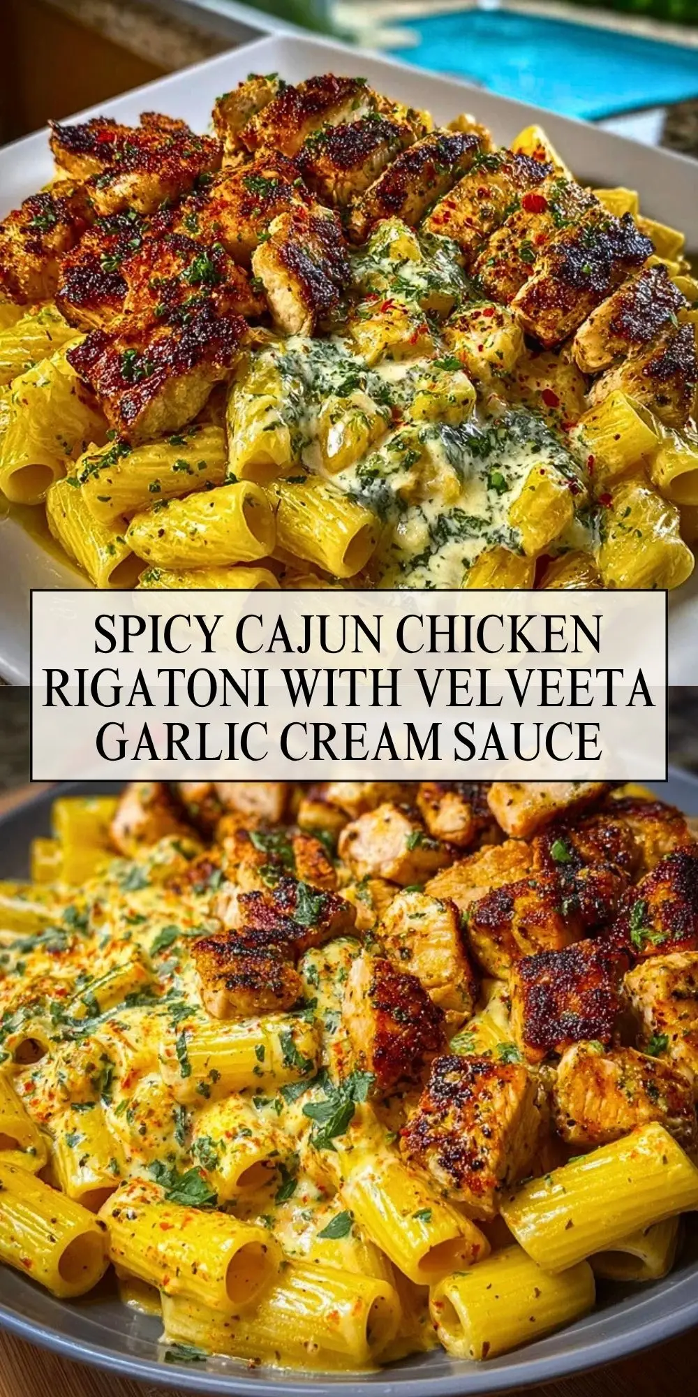 This Spicy Cajun Chicken Rigatoni with Velveeta Garlic Cream Sauce is a soul-warming dish that blends bold Southern heat with creamy, cheesy comfort. Tender seared Cajun chicken pairs with ridged rigatoni noodles that cling to every drop of the garlicky Velveeta cream sauce. Perfect for weeknight dinners or impressing guests, this flavorful pasta is hearty, spicy, and irresistibly smooth.