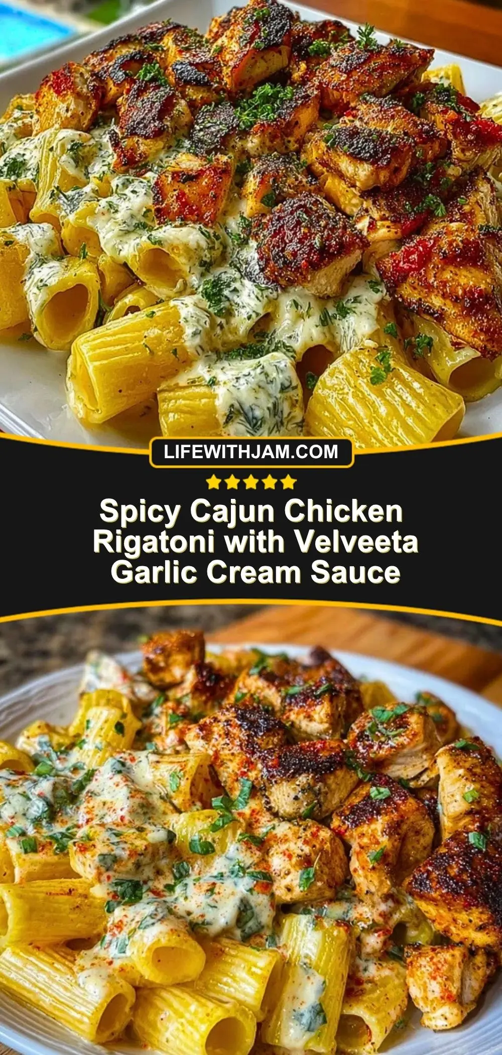 Keywords: Cajun pasta, Velveeta recipes, creamy chicken rigatoni
