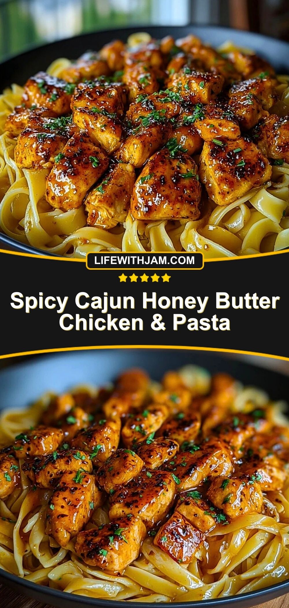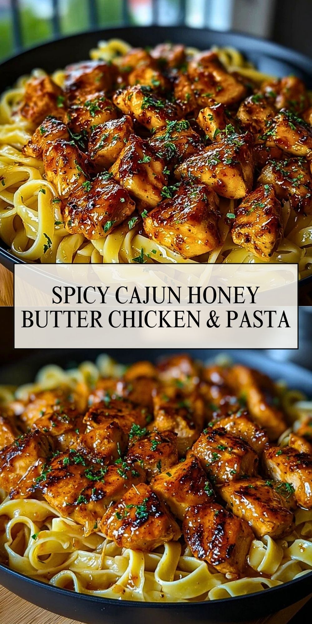 Spicy Cajun Honey Butter Chicken & Pasta is the ultimate Southern-inspired comfort dish—sweet, spicy, buttery, and deeply flavorful. Juicy chunks of Cajun-seasoned chicken are glazed in a honey butter sauce and tossed with tender pasta for a quick weeknight dinner that’s both cozy and unforgettable.