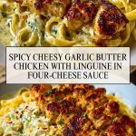 Spicy Cheesy Garlic Butter Chicken with Linguine in Four-Cheese Sauce