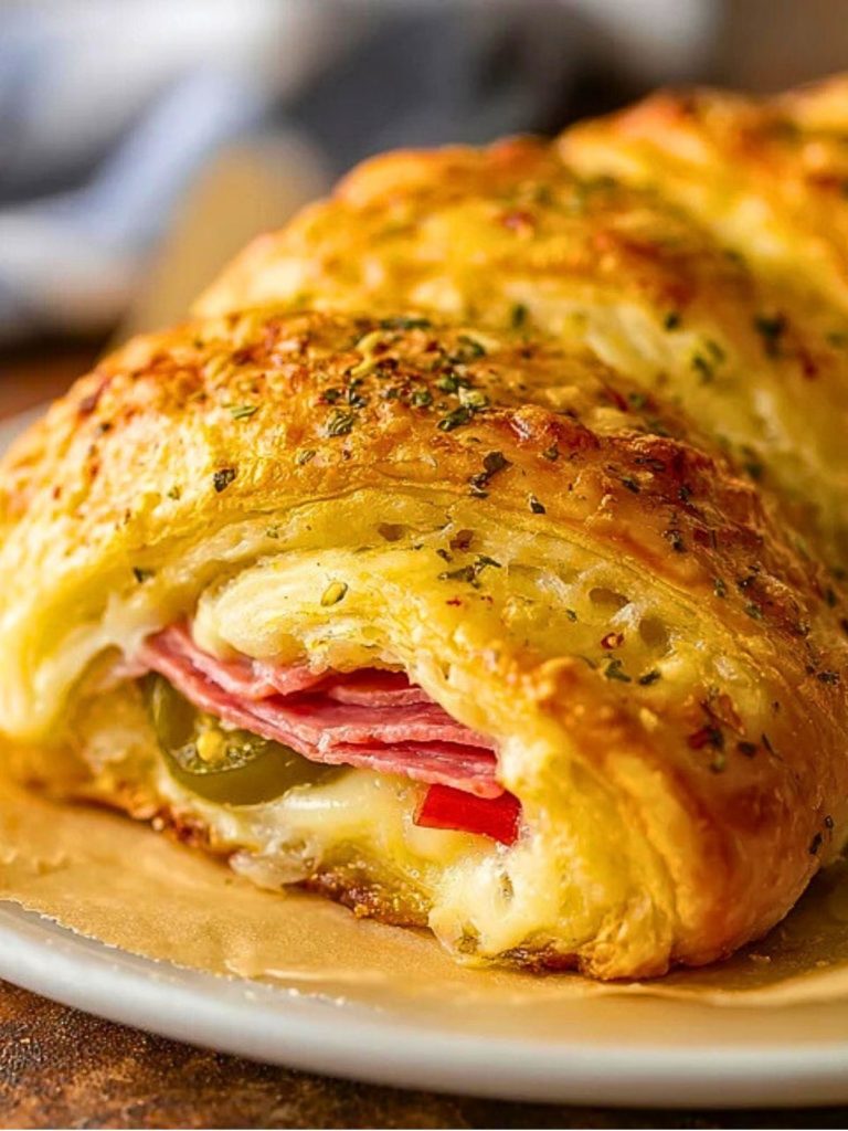 It comes together quickly with crescent dough and a few classic sandwich fixings. Each bite delivers a warm, gooey center with a crisp exterior, and that signature zing from banana peppers or jalapeños. Whether served hot out of the oven or at room temp for a picnic, it’s guaranteed to impress your people (and your taste buds).