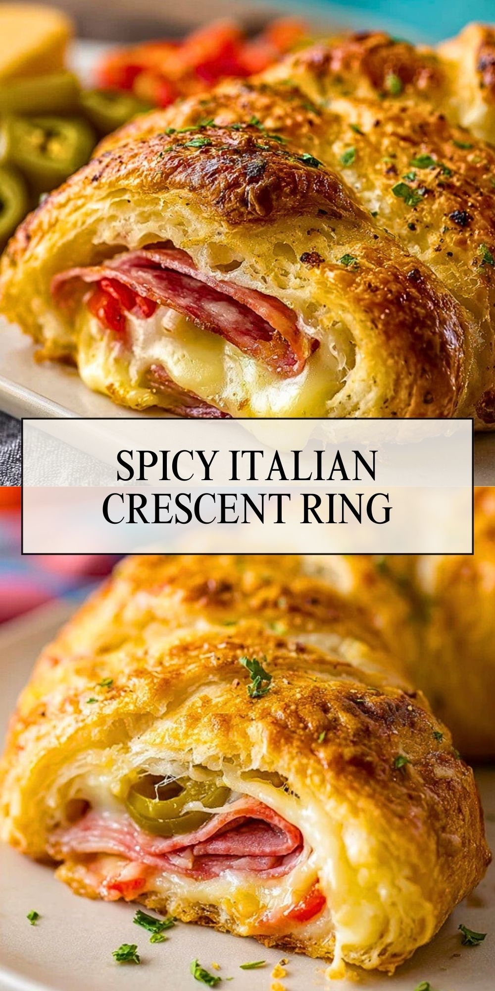 This Spicy Italian Crescent Ring is a pull-apart party favorite made with flaky crescent dough, layers of Genoa salami, deli ham, melty mozzarella, and a spicy-sweet combo of banana peppers and roasted red peppers. Perfect for game days, brunch spreads, or quick weeknight dinners. Easy to assemble and crowd-approved!