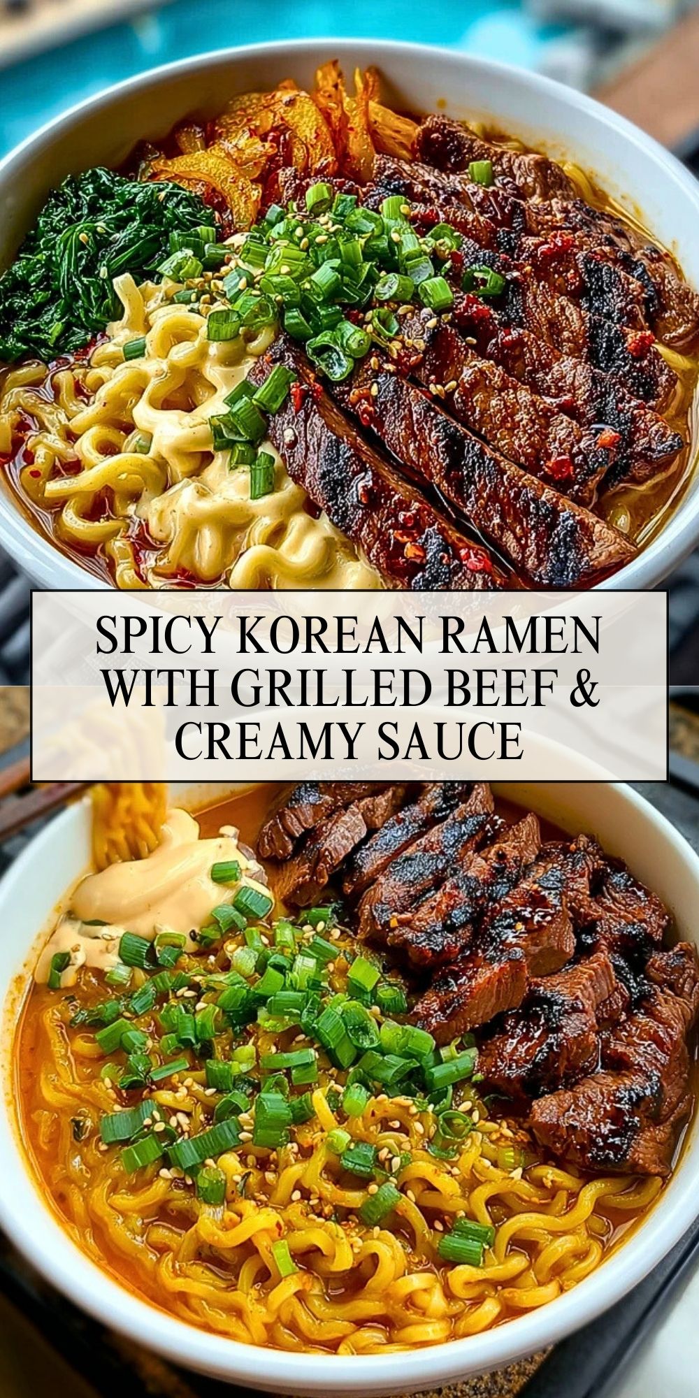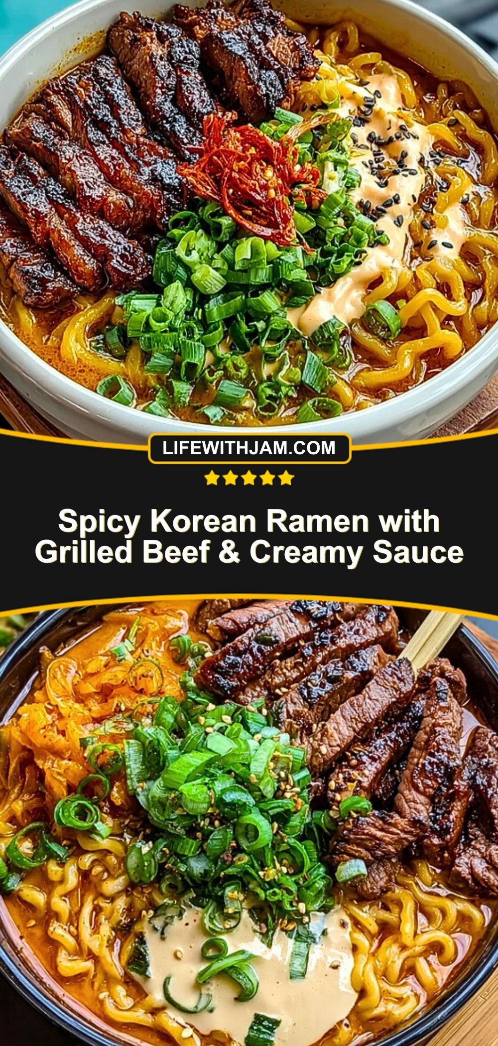 Spicy Korean Ramen with Grilled Beef & Creamy Sauce