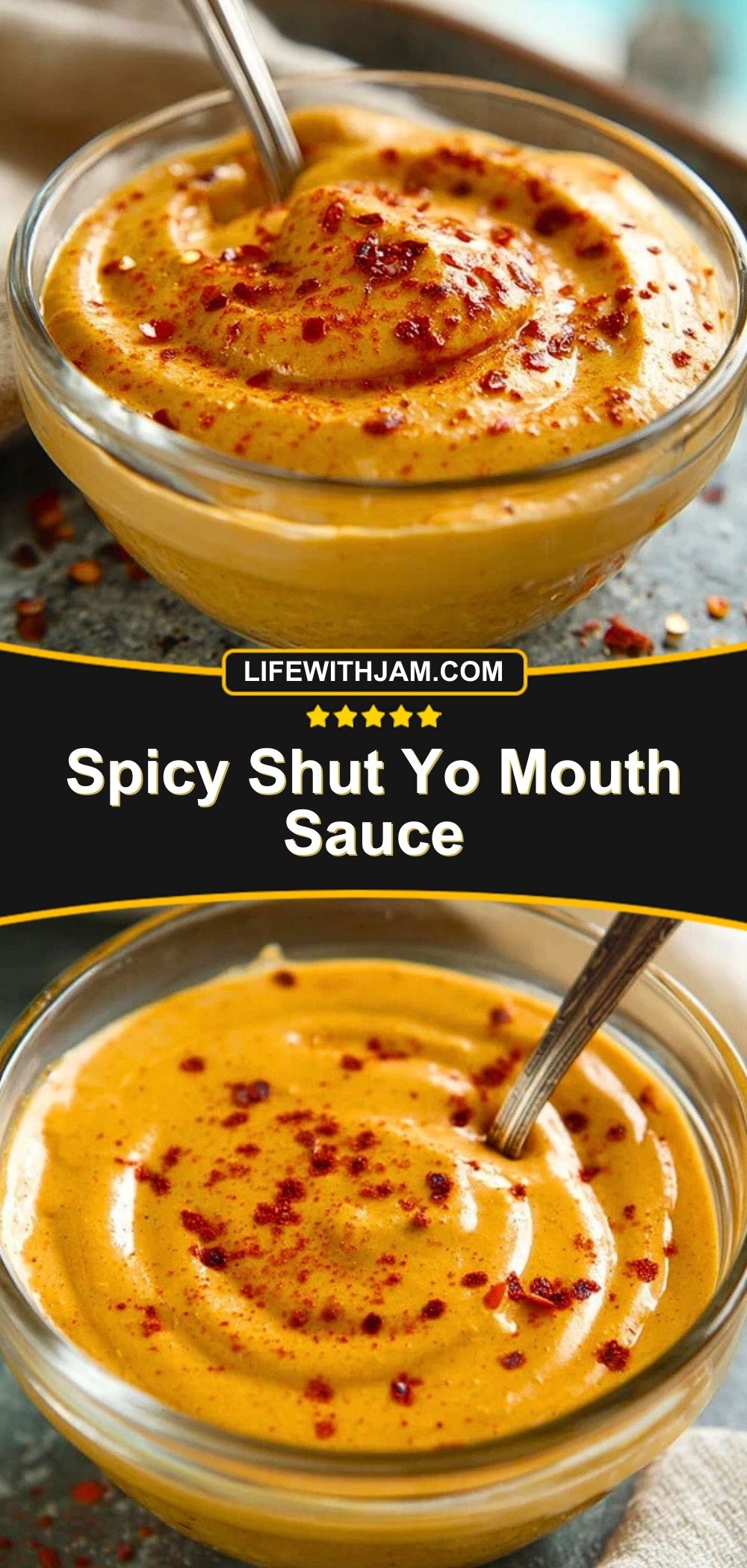 This Spicy Shut Yo Mouth Sauce is the ultimate fiery condiment for heat seekers. Creamy, tangy, smoky, and boldly seasoned, it’s perfect for drizzling on burgers, dunking fries, or giving any dish a flavorful punch. Customize the heat level to your taste and let this sauce shout your love for spice.