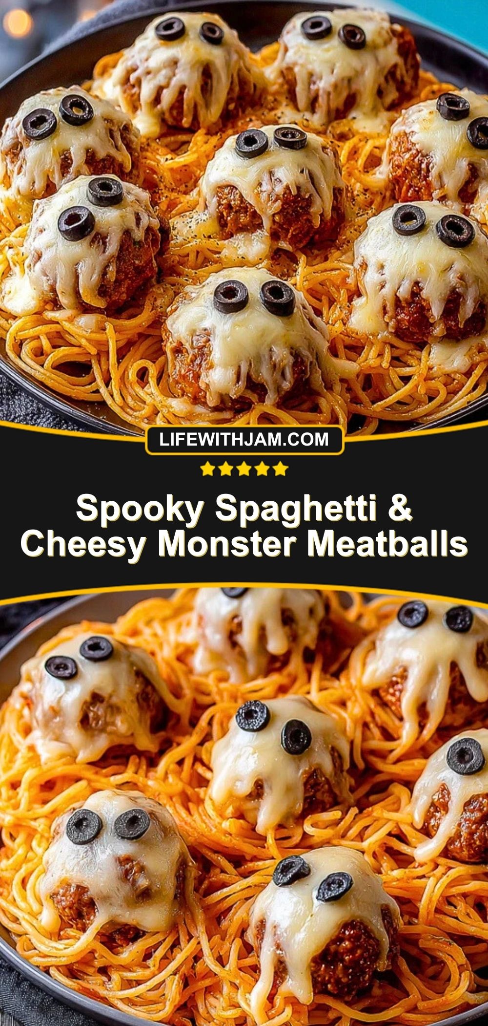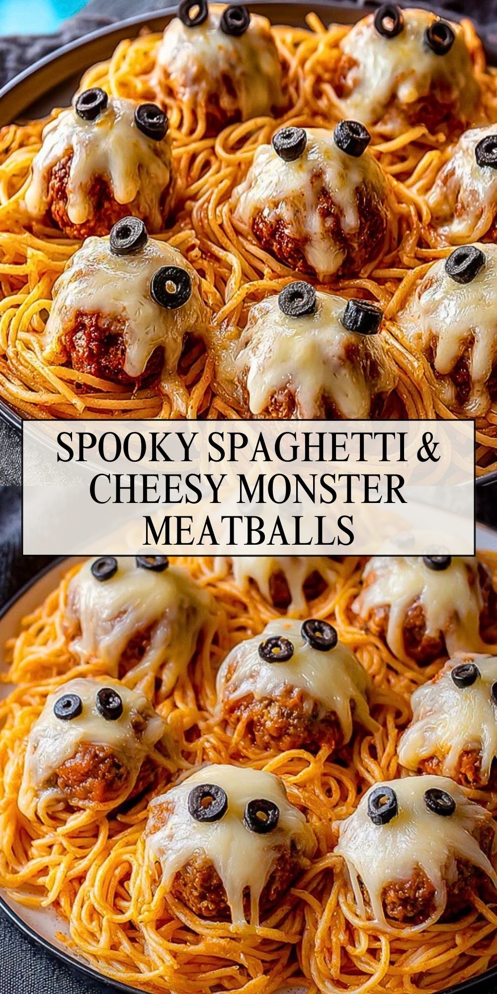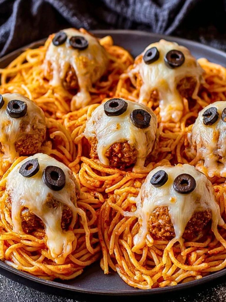 These Spooky Spaghetti & Cheesy Monster Meatballs are the ultimate Halloween dinner—fun, flavorful, and just the right amount of creepy. Imagine tender spaghetti coated in rich marinara, topped with juicy meatballs wearing melted cheese as ghostly shrouds. Their haunting “eyes” made from black olives will have your little monsters giggling and gobbling them up.