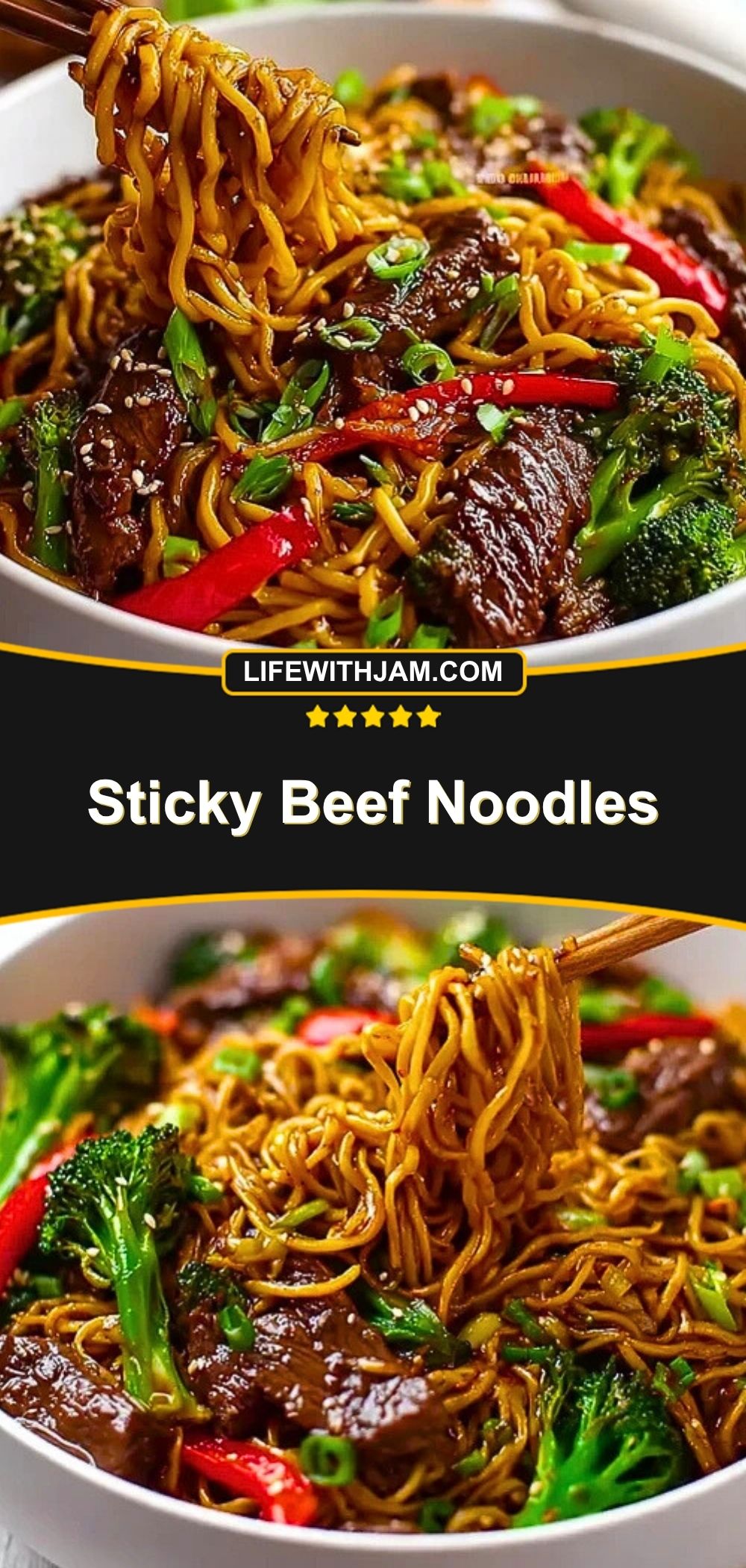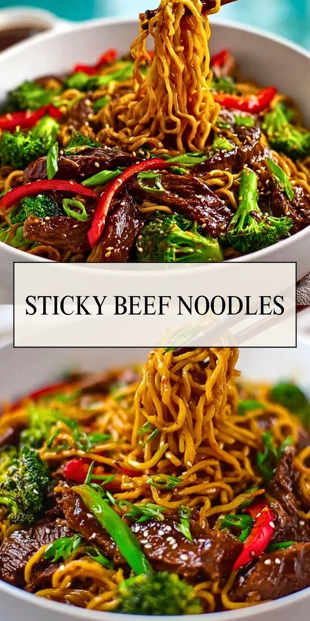 Sticky Beef Noodles are a quick and flavorful stir-fry dish made with tender slices of beef, crisp vegetables, and chewy noodles, all tossed in a sweet, sticky soy-hoisin glaze. It’s a 30-minute meal that’s perfect for busy weeknights and delivers serious takeout-style flavor at home.