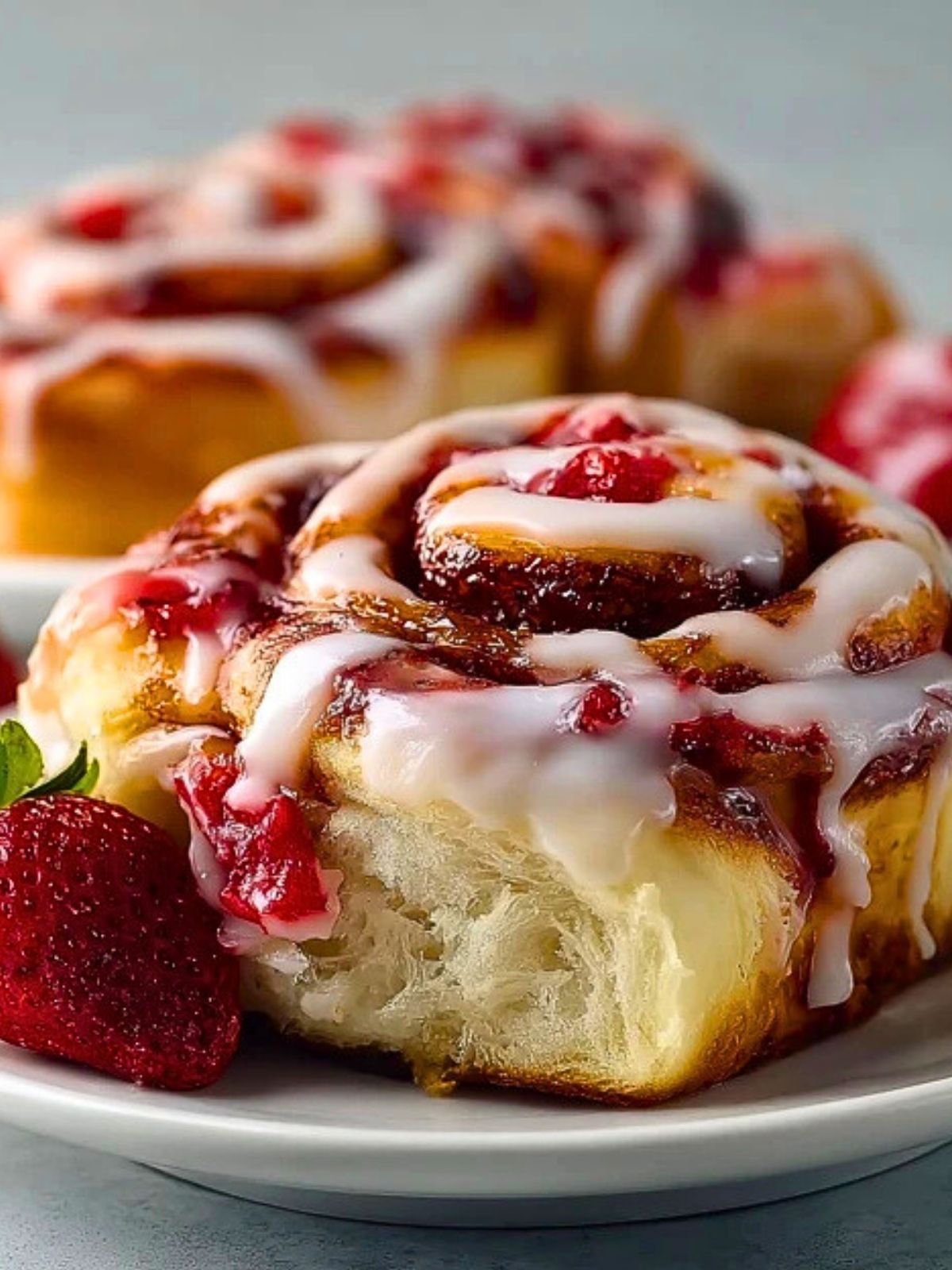 These rolls are best served warm, fresh out of the oven when the cream cheese is soft and the strawberry juices are still bubbling. The glaze melts perfectly over the top, making each bite rich and gooey.