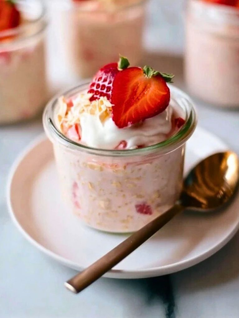Each spoonful is a swirl of silky Greek yogurt, fresh strawberries, and a touch of cream cheese for that signature cheesecake flavor. Rolled oats absorb all that goodness overnight, softening into a pudding-like texture that feels decadent yet totally balanced. It’s the kind of breakfast that feels like a treat, but fuels your day with fiber and protein.
