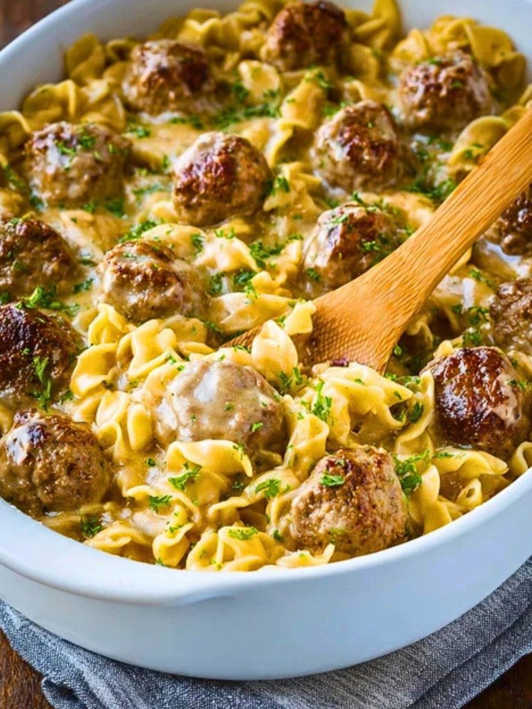This cozy Swedish Meatball Pasta Bake combines juicy homemade meatballs, creamy gravy, and tender egg noodles, all baked together for a comforting, one-pan dinner the whole family will love.