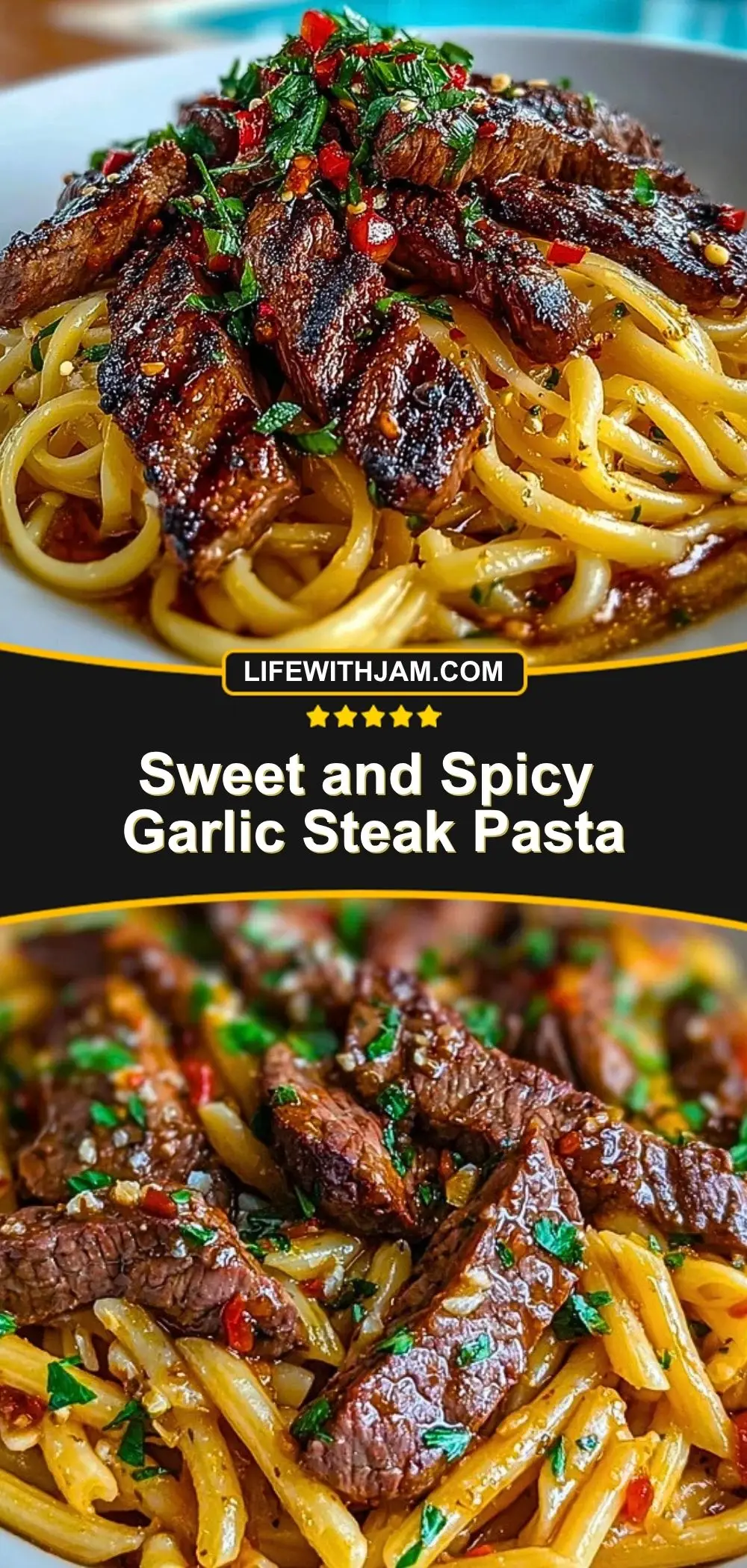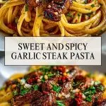 Keywords: steak pasta, garlic steak pasta, sweet and spicy pasta, weeknight dinner