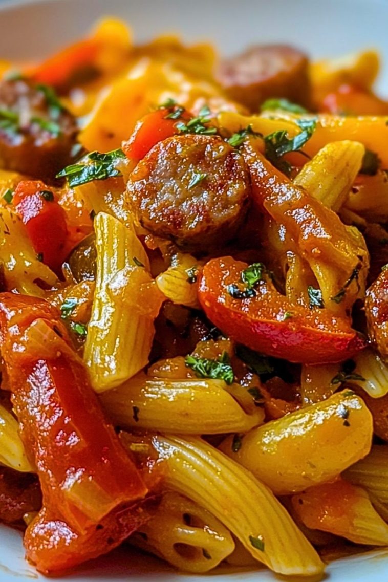 A cozy and colorful pasta dish featuring penne, smoky sausage, and tender bell peppers in a rich tomato sauce. It’s an easy weeknight meal with bold flavors and minimal fuss.