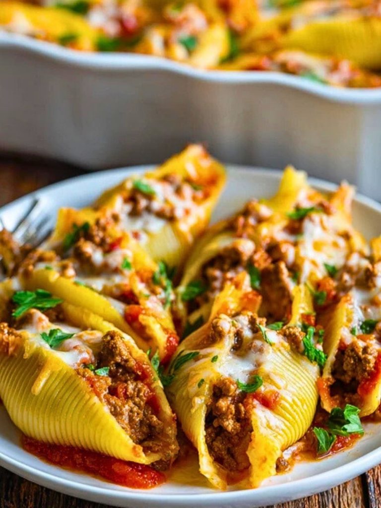These Taco Stuffed Shells are the perfect mashup of Mexican and Italian comfort food. Imagine giant pasta shells stuffed to the brim with flavorful taco-seasoned ground beef, smothered in salsa and melted cheese, then baked until bubbling and golden. It’s hearty, cheesy, and loaded with bold Tex-Mex flavors in every bite.