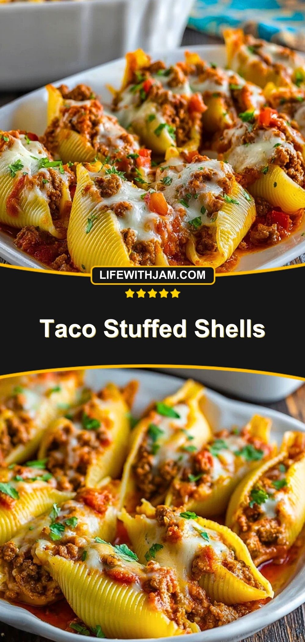 Taco Stuffed Shells are best served hot, straight from the oven when the cheese is perfectly melted and the flavors are at their peak. Pair them with a crisp green salad, Mexican street corn, or a scoop of guacamole and chips for a well-rounded dinner. For toppings, think sour cream, sliced jalapeños, or diced avocado to dial up the flavor.