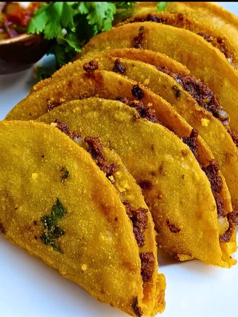 Tacos Dorados are crispy, golden tacos filled with seasoned ground beef, folded and fried until crunchy, then topped with fresh, cool ingredients. A Mexican street food classic turned family favorite, they’re perfect for weeknight dinners or party platters.