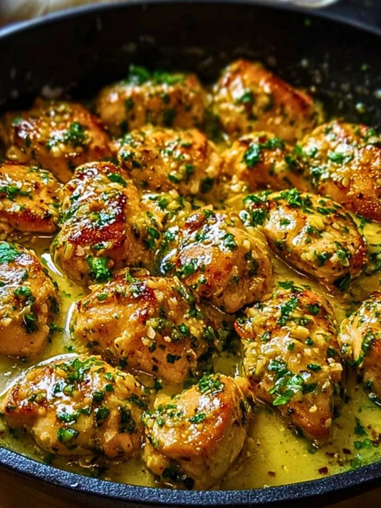 Add the cooked chicken back to the skillet. Toss to coat each piece in the garlic butter sauce. Simmer for another 2–3 minutes until everything is well coated and hot.
