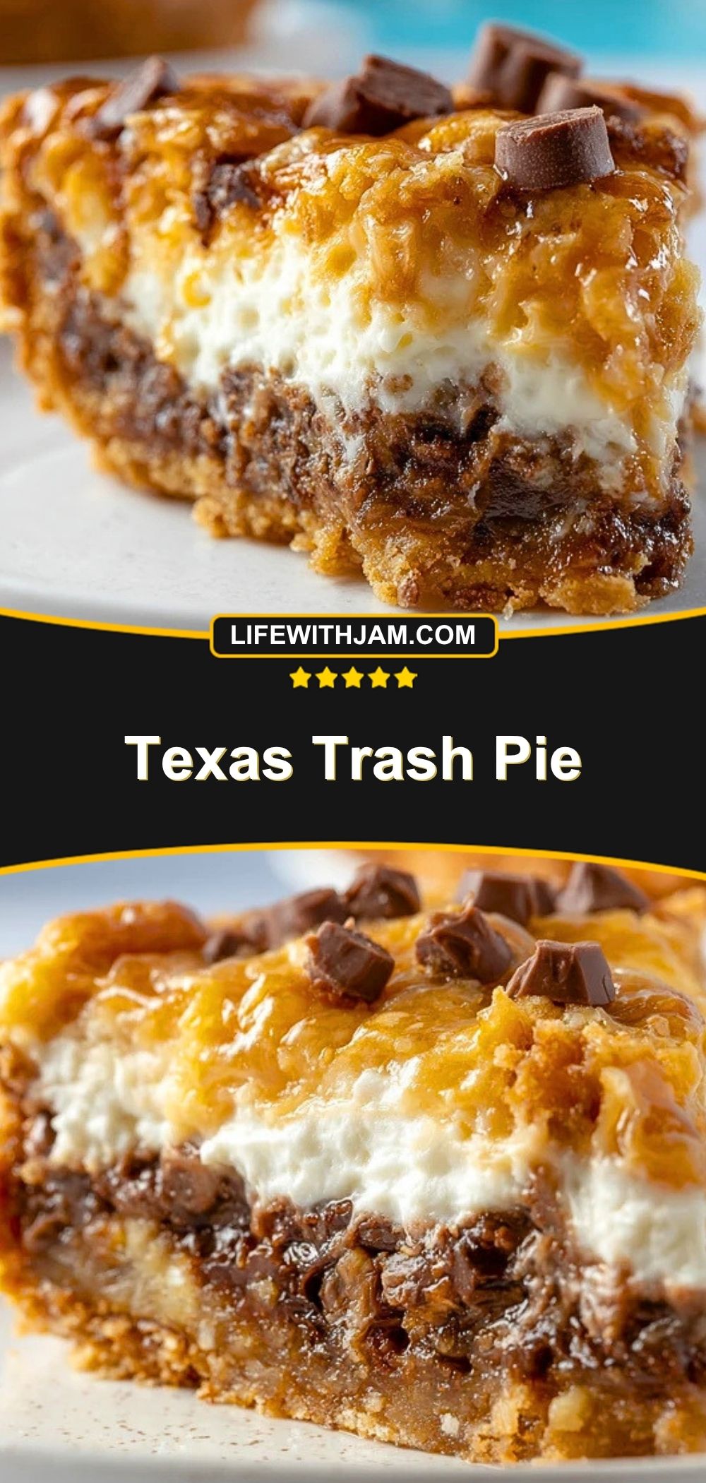 When you make this Texas Trash Pie, leave a comment and share how it turned out. Did you add extra chocolate chips, serve it with ice cream, or drizzle on more caramel? Little changes can make this pie feel like your own signature dessert.