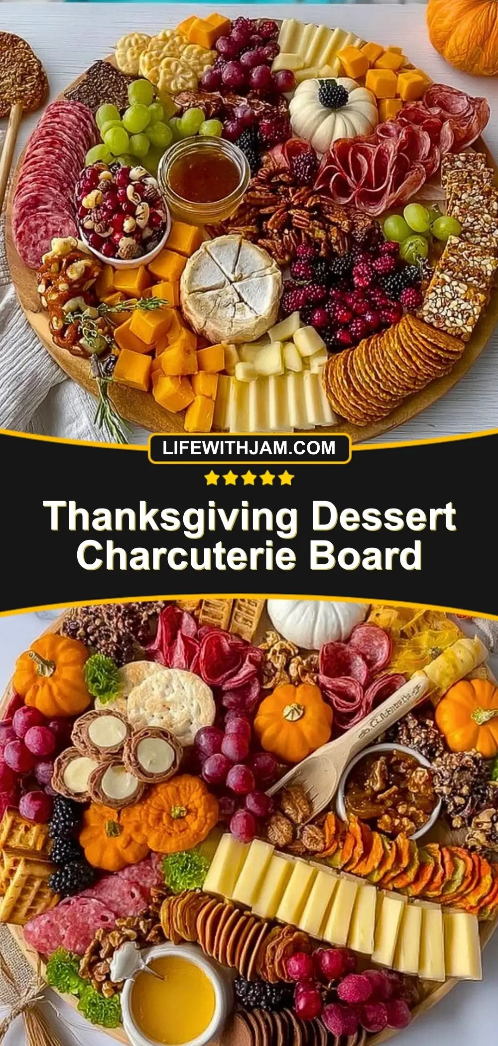 Bring a little extra wow to your Thanksgiving table this year with a Thanksgiving Dessert Charcuterie Board that’s just as delightful to look at as it is to nibble on. Overflowing with autumnal color, sweet treats, cheeses, fruits, and festive flair, this board is perfect for grazing after the big feast or serving as a centerpiece at your holiday gathering.