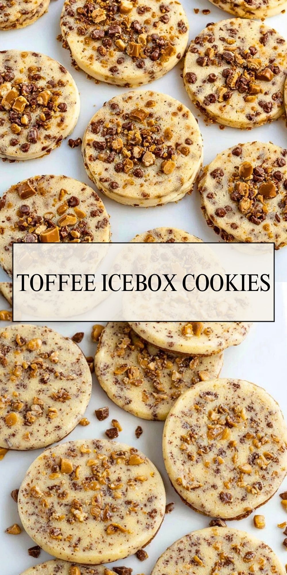 Toffee Icebox Cookies are crisp, buttery slice-and-bake cookies filled with crunchy toffee bits and chocolate. Perfect for holidays or everyday treats, they store and freeze well, making them ideal for make-ahead baking.